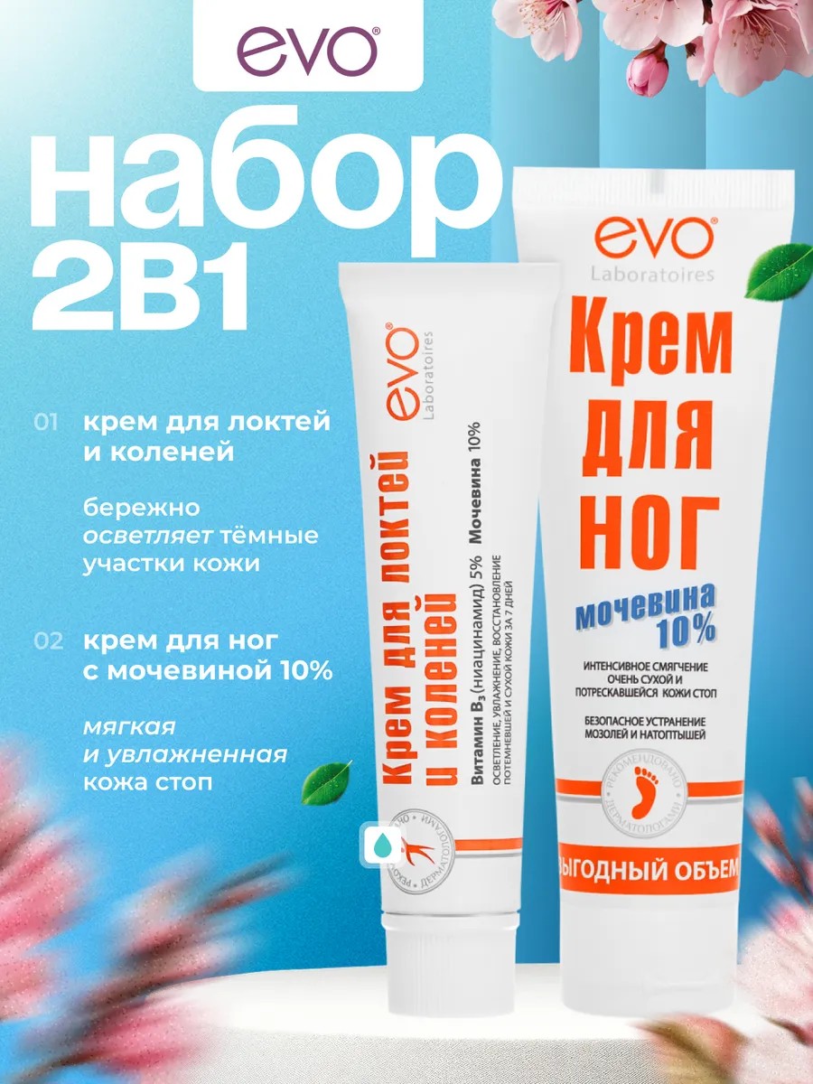 | Полное наименование товара | Evo Крем для ног с мочевиной, 100 мл+Крем для локтей и коленей, 46 мл |