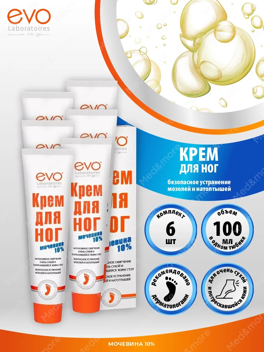 Крем для ног EVO с мочевиной 10 % увлажняющий и питательный 100 мл, 6 шт — это эффективное средство для ухода за сухой, потрескавшейся и склонной к образованию мозолей кожей стоп. Его достоинства заключаются в богатом составе, сочетающем увлажняющие, питательные и восстановительные компоненты.