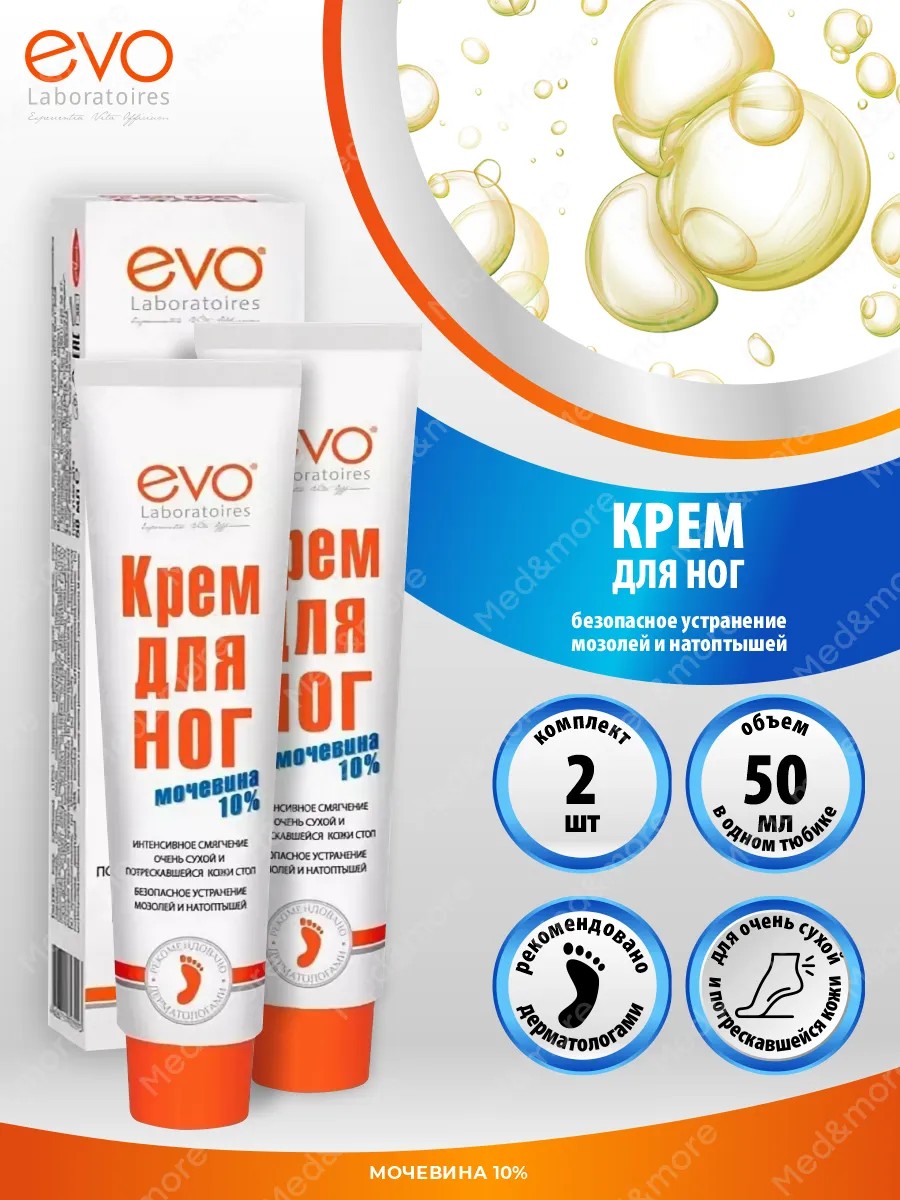 Крем для ног EVO с мочевиной 10 % увлажняющий и питательный 50 мл, 2 шт — это эффективное средство для ухода за сухой, потрескавшейся и склонной к образованию мозолей кожей стоп. Его достоинства заключаются в богатом составе, сочетающем увлажняющие, питательные и восстановительные компоненты.