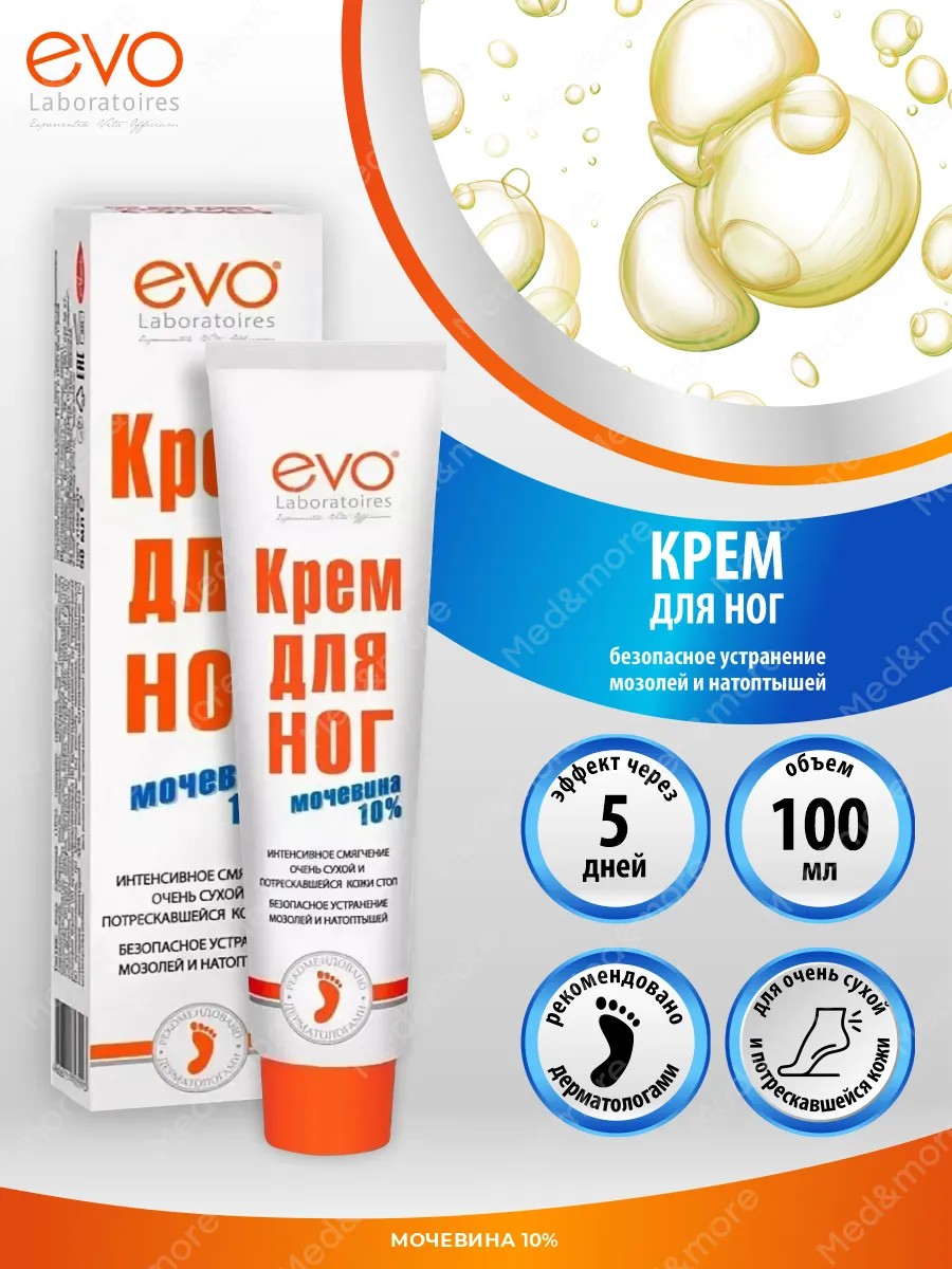 Крем для ног EVO с мочевиной 10 % увлажняющий и питательный 100 мл, 1 шт — это эффективное средство для ухода за сухой, потрескавшейся и склонной к образованию мозолей кожей стоп. Его достоинства заключаются в богатом составе, сочетающем увлажняющие, питательные и восстановительные компоненты.