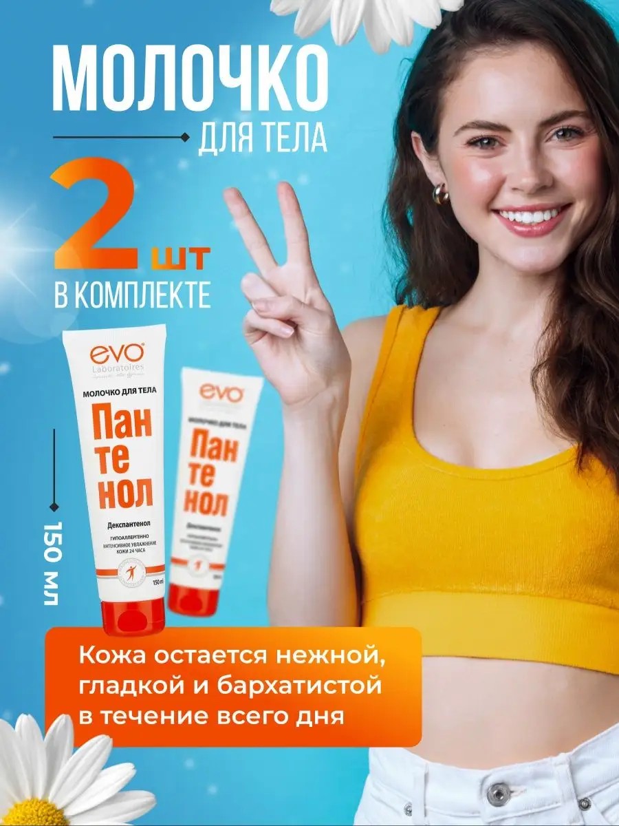 МОЛОЧКО Пантенол EVO с 2% содержанием ДЕКСПАНТЕНОЛА и ВИТАМИНОМ Е эффективно УВЛАЖНЯЕТ кожный покров после контакта с хлорированной водой, чрезмерного пребывания на солнце или обветривания. Легкая текстура хорошо распределяется и быстро впитывается,хорошо увлажняет кожу, не оставляя ощущения липкости. Гипоаллергенно.