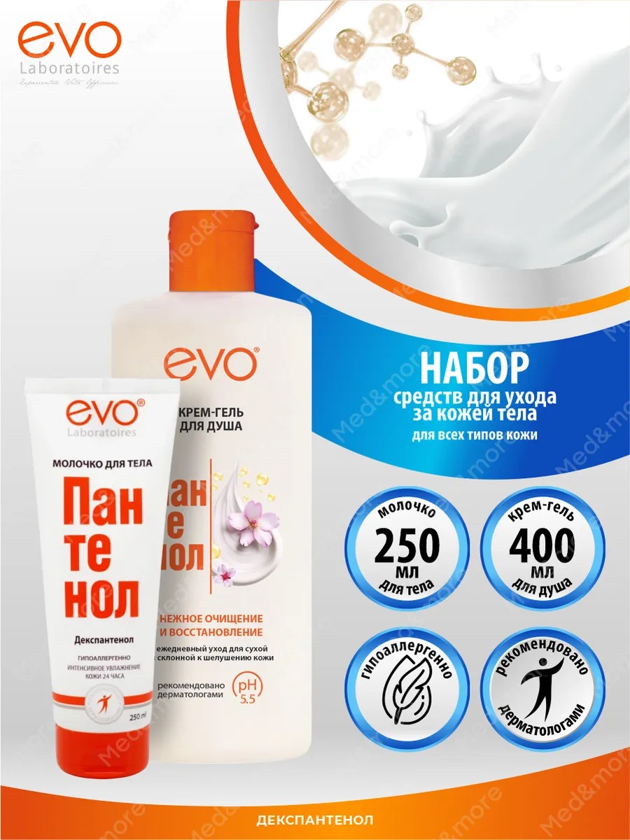 КомплектацияНабор EVO Пантенол Молочко для тела 250 мл.+Крем-гель для душа для сухой и чувствительной кожи 400мл