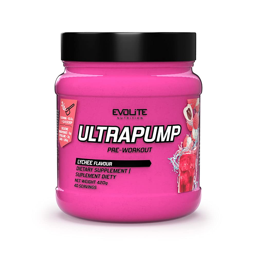 Evolite Nutrition Pre Workout Booster "Ultra Pump" 420 G - Energy Drink Powder with creatine monohydrate and caffeine - l arginine - beta alanin - citrullin (litschi) 420g lychee