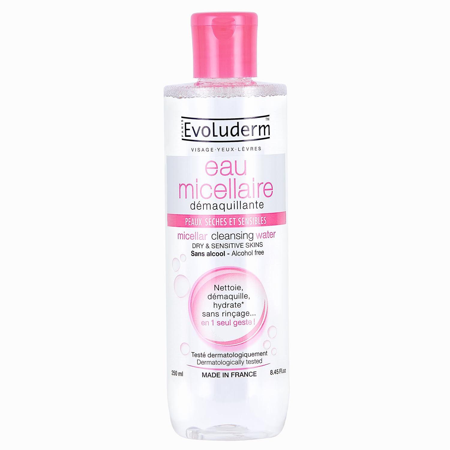 MADE IN FRANCE: All Evoluderm products are entirely made in France and tested by independent laboratories. This ensures impeccable quality and respect for the environment. SOOTHING: Cotton Extract provides soothing and hydration, along with a breath of freshness for your sensitive skin. CLEANSES: Its makeup-removing action gently removes your makeup. Ridding your face of impurities and balancing your sebum, it's an essential in your beauty routine. DRY SENSITIVE SKIN: Because your skin needs special attention, Evoluderm has developed this Micellar Water that respects and cares for it.