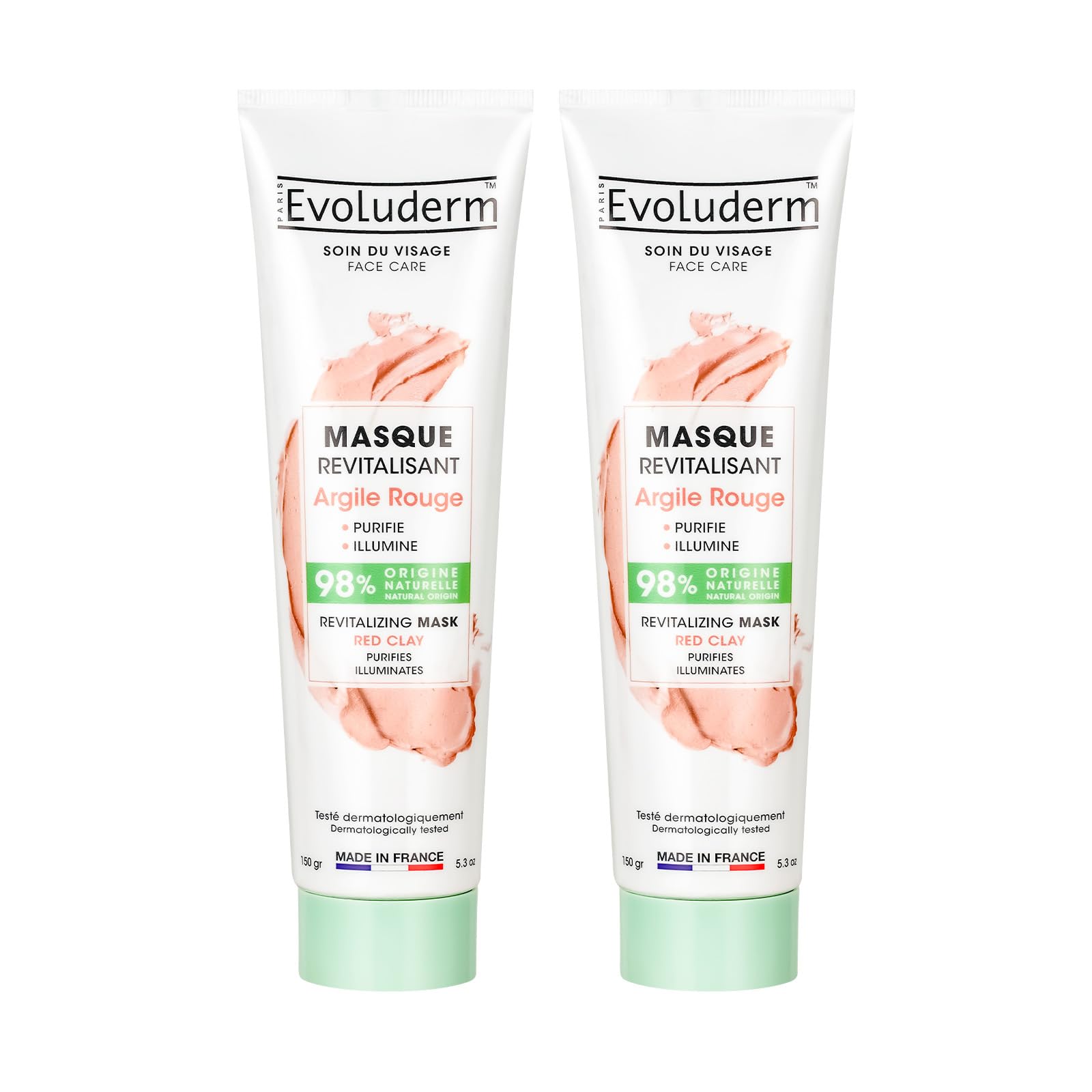 Dreaming of a unified and refreshed complexion? Formulated with 98 natural ingredients and vegan ingredients, the Red Clay Revitalizing Mask purifies and illuminates the skin. Thanks to its rebalancing action, signs of fatigue are diminished and the complexion is revitalized. Its non-drying, creamy texture provides an immediate feeling of comfort. Rich in minerals and trace elements, Red Clay energizes the skin and makes it more radiant in a single step. Combined with Glycerin, it mattifies and controls shine for a sublimely beautiful complexion. The result: skin is oxygenated, it breathes! Let's take care of the planet. This tube is 100 recyclable and made in France. Throw it away, it's recycled! The upper layers of the epidermis. INGREDIENTS WATER (AQUA), KAOLIN, GLYCERYL STEARATE SE, ILLITE, GLYCERIN, ALLANTOIN, XANTHAN GUM, SODIUM POLYACRYLATE, FRAGRANCE (PARFUM), BENZYL ALCOHOL, DEHYDROACETIC ACID, CITRIC ACID, FD C RED 4 (CI 14700). SAFETY WARNING N A See moreMADE IN FRANCE: All Evoluderm products are entirely made in France and tested by independent laboratories. This ensures impeccable quality and respect for the environment. ILLUMINATES: The detoxifying formula of this mask illuminates and revives the skin's radiance without drying it out. PURIFIES: Thanks to its rebalancing action, Red Clay energizes the skin and makes it more radiant in a single step. Combined with Glycerin, it mattifies and controls shine for a sublime complexion. REVITALIZES: With its non-drying, creamy texture, this mask provides an immediate feeling of comfort. Signs of fatigue are diminished and the complexion is revitalized. 98 natural origin. Vegan. Dermatologically tested.EVOLUDERM - Masque Revitalisant Argile Rouge - 150 ml - 98 d'origine naturelle - Vegan - Fabrication Française - Lot de 2 x 150 mlDESCRIPTION DU PRODUIT DESCRIPTION DU PRODUIT Vous rêvez d'un teint unifié et défatigué ? Formulé à 98 d'origine naturelle et végan, le Masque Revitalisant Argile Rouge purifie et illumine la peau. Grâce à son action rééquilibrante, les signes de fatigue sont estompés et le teint reboosté. Sa texture crémeuse non asséchante apporte une sensation de confort immédiate. Riche en minéraux et en oligo-éléments, l'Argile Rouge énergise la peau et la rend plus éclatante en un seul geste. Associée à la Glycérine, elle matifie et contrôle les brillances pour un teint sublimé. Résultat : la peau est oxygénée, elle respire ! Prenons soin de la planète. Ce tube est 100 recyclable et fabriqué en France. Jetez, c'est recyclé ! Les couches supérieures de l'épiderme. INGRÉDIENTS WATER (AQUA), KAOLIN, GLYCERYL STEARATE SE, ILLITE, GLYCERIN, ALLANTOIN, XANTHAN GUM, SODIUM POLYACRYLATE, FRAGRANCE (PARFUM), BENZYL ALCOHOL, DEHYDROACETIC ACID, CITRIC ACID, FD C RED 4 (CI 14700). AVERTISSEMENT DE SÉCURITÉ RAS Voir plusFABRICATION FRANÇAISE : L'ensemble des produits de la marque Evoluderm sont intégralement fabriqués en France et testés par des laboratoires indépendants. Cela permet de conserver une qualité irréprochable et respectueuse de l'environnement. ILLUMINE : La formule détoxifiante de ce masque illumine et ravive l'éclat de la peau, sans la dessécher. PURIFIE : Grâce à son action réequilibrante, l'Argile Rouge énergise la peau et la rend plus éclatante en un seul geste. Associée à la Glycérine, elle matifie et contrôle les brillances pour un teint sublimé. REVITALISE : De part sa texture crémeuse non asséchante, ce masque apporte une sensation de confort immédiate. Les signes de fatigue sont estompés et le teint reboosté. 98 d'origine naturelle Végan Testé dermatologiquement.