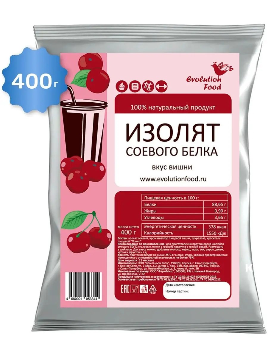 Evolution Food Изолят соевого белка Вишня, 400 г
