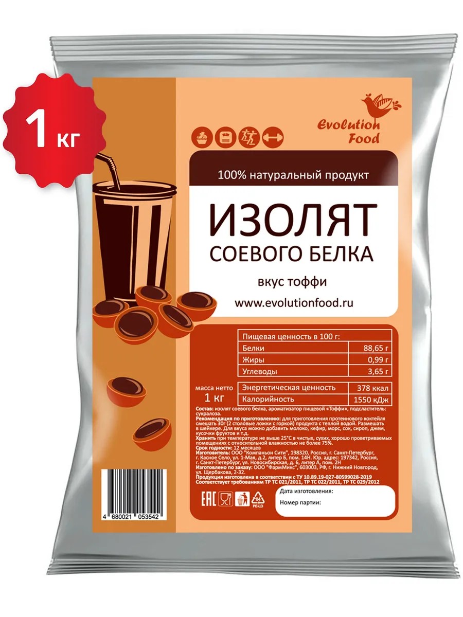 Evolution Food Изолят соевого белка Тоффи, 1 кг