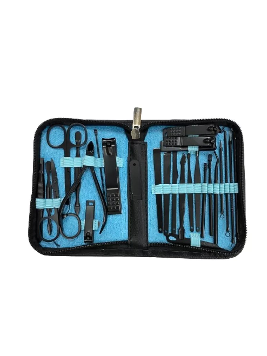 EVOLVE Набор маникюрный средний черный кожаный 26 в 1