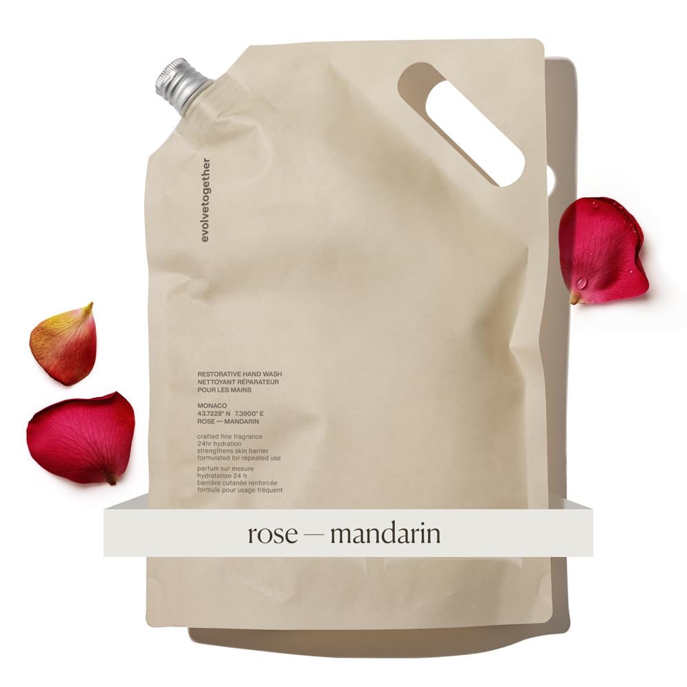 evolvetogether Restorative Hand Wash Refill | Monaco Rose Mandarin Oud & Patchouli | Hydrating Non-Stripping Cleanse 24-Hour Moisture | Vegan Cruelty-Free Sulfate-Free | 25.36 fl oz 2 Refills