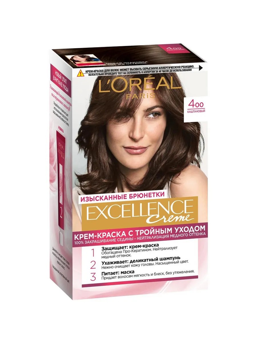 Полное наименование товараКрем-краска для волос L'Oreal Paris Excellence creme 4.00 Каштановый, 268мл