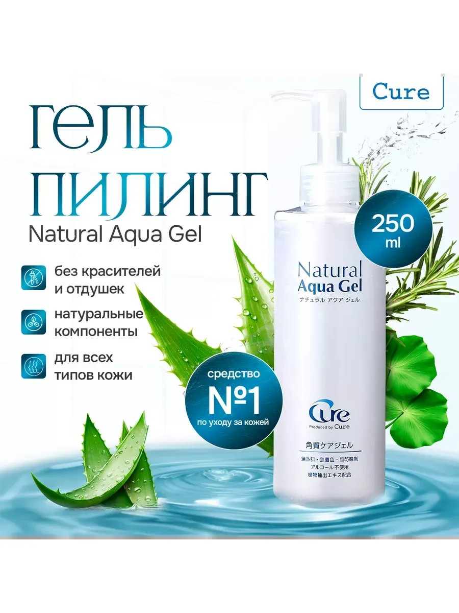 Natural Aqua Gel от Cure — деликатный пилинг-гель для лица с легкой текстурой и безопасным составом, действует быстро и эффективно. Состав пилинг геля богат натуральными ингредиентами: — экстракт алоэ-вера борется с воспалениями, увлажняет и осветляет пигментацию; — экстракт розмарина обладает тонизирующим, очищающим и восстанавливающим действием; — экстракт гинкго-билоба улучшает состояние капилляров, активирует циркуляцию крови, уменьшает выраженность куперозных явлений. Сильный антиоксидант. Гель-пилинг отлично очищает и выравнивает рельеф кожи. При систематическом использовании гель скатка убирает «черные точки» и улучшает цвет лица. Не содержит консервантов, красителей и парфюмерных добавок. Природный Аква Гель скраб для лица – это нежный и натуральный отшелушивающий гель, который эффективно удаляет мертвые клетки кожи, не вызывая чрезмерную нагрузку на кожу. В отличие от химических пилингов, которые используют сильную кислоту, Cure очень нежный на коже и удаляет только нежелательные мертвые клетки кожи. Поскольку гель содержит натуральные ингредиенты, не содержит консервантов, ароматизаторов, искусственных красителей и алкоголя, он считается лучшим выбором для очень чувствительной кожи или людей с серьезными проблемами акне. Cure Natural Аква гель уход за лицом следует использовать только пару раз в неделю. Перед использованием пилинга нужно подготовить кожу — очистить от загрязнений. Нанести гель на лицо. Массирующими движениями распределить по коже и аккуратно скатать отмерший слой до образования 'катышек' на лице. Умыться теплой водой (лицо лучше не вытирать, а слегка промокнуть полотенцем). Нанести увлажняющий крем или любой уход спустя 15-20 минут. Для лучшего достижения эффекта от вашего основного ухода, рекомендуется перед использовать пилинг. Вы очищаете верхний слов от так называемого 'кладбища мертвых клеток' и ваши основные средства начинают попадать в эпидермис намного быстрее.