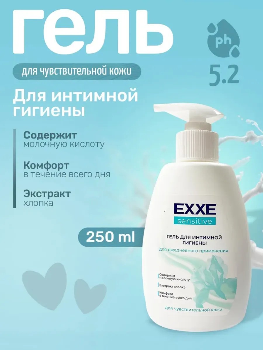 Гель для интимной гигиены EXXE 250 мл, Sensitive. Гель для интимной гигиены Exxe sensitive создан специально для женщин с чувствительной кожей. Объем 250 мл обеспечивает длительное использование и комфортное ощущение. Формула включает в себя молочную кислоту, которая помогает поддерживать естественный баланс кожи, предотвращая развитие неприятных ощущений и обеспечивая деликатный уход.