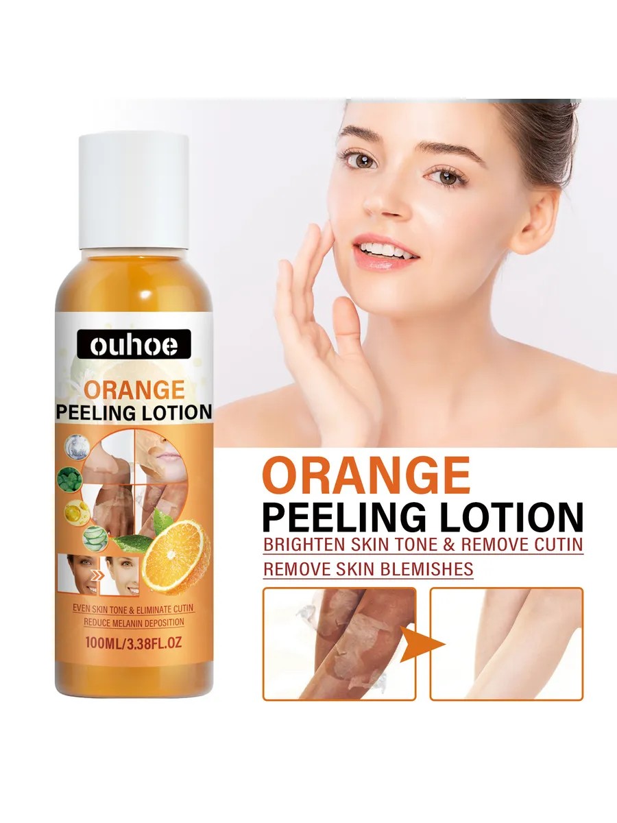 -[Очищение и отшелушивание] Апельсиновый отшелушивающий лосьон для тела мгновенно очищает любую часть тела или лица, удаляет накопления грязи и других частиц из пор, помогая вам достичь гладкости и красоты.\n-[Увлажнение кожи] Увлажняющий отшелушивающий лосьон для тела увлажняет кожу и естественным образом укрепляет кожный барьер. Он делает кожу гладкой и эластичной даже в сухую погоду.\n-Натуральные ингредиенты. Апельсиновый отшелушивающий лосьон изготовлен из натуральных ингредиентов, которые безопасны для вашего тела и помогают улучшить состояние кожи быстрее и легче.\n-Инфузированный коллаген. Отшелушивающее средство выведет ваш уход за кожей на новый уровень, стимулируя выработку естественного коллагена, как лучшие укрепляющие кремы, помогая минимизировать признаки старения и придавая лицу более молодой цвет.\n-Для всех типов кожи. Независимо от того, жирная у вас кожа, сухая, нормальная или комбинированная, отшелушивающий лосьон Orange Exfoliating Lotion безопасен в использовании и станет идеальным дополнением к вашей ежедневной процедуре ухода за лицом.
