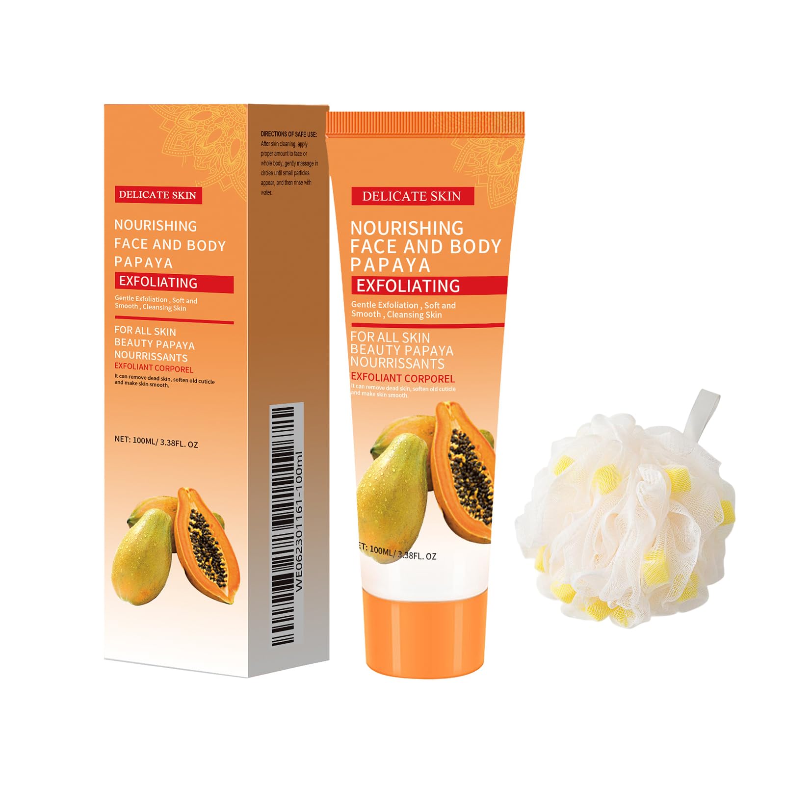 SAFETY WARNING NoNatural Ingredients: We use natural ingredients such as papaya extract (known for its gentle exfoliating properties) to formulate our papaya exfoliating gel. It gently conditions the skin and naturally reveals a brighter, healthier complexion. Convenient and Easy to Use: Our papaya exfoliating gel and bath ball are designed for ease of use. The easy-to-use gel and bath ball make it easy to incorporate into your daily skin care routine. Apply the gel to a sponge, massage into the skin and then rinse with water for a thorough and refreshing cleanse. Suitable for body and face: Our papaya exfoliating gel and bath ball can be used on both the body and face. The mild formula is suitable for all skin types and can be used daily to maintain smooth, radiant skin. The bath ball produces a rich foam, making the cleaning experience even more pleasant. Moisturizing and Refreshing: Our papaya exfoliating gel not only exfoliates, but also contains moisturizing ingredients, leaving your skin feeling refreshed and hydrated. Whether you have dry or combination skin, this gel gently cleanses while preserving your skin's natural oils. Gentle exfoliation: Experience the gentle yet effective exfoliating action of our papaya exfoliating gel and bath ball. The papaya exfoliating gel is rich in natural papaya enzymes, which help dissolve dead skin cells, revealing smoother, softer skin. The bath ball enhances the exfoliating effect, making it an ideal choice for a refreshing, clean feeling.Exfoliërende gel, Bodyscrub, Moisturizing Body Wash, voor een Schone, Gehydrateerde, Verzachte en Stralende Huid, Hydrateert en Voedt de Huid, Geschikt voor alle Huidtypes, Bevat Badbloemen VEILIGHEIDSWAARSCHUWING NoNatuurlijke ingrediënten: Wij gebruiken natuurlijke ingrediënten zoals papaja-extract (bekend om zijn zachte exfoliërende eigenschappen) om onze papaja-exfoliërende gel te formuleren. Het verzorgt de huid op milde wijze en onthult op natuurlijke wijze een helderdere, gezondere teint. Handig en gemakkelijk te gebruiken: Onze papaja-exfoliërende gel en badbal zijn ontworpen voor gebruiksgemak. De gebruiksvriendelijke gel en badbal maken het eenvoudig om in uw dagelijkse huidverzorgingsroutine op te nemen. Breng de gel aan op een spons, masseer in de huid en spoel vervolgens af met water voor een grondige en verfrissende reiniging. Geschikt voor lichaam en gezicht: Onze papaja-exfoliërende gel en badbal kunnen zowel op het lichaam als op het gezicht worden gebruikt. De milde formule is geschikt voor alle huidtypes en kan dagelijks worden gebruikt om een gladde, stralende huid te behouden. De badbal produceert een rijk schuim, waardoor de reinigingservaring nog aangenamer wordt. Hydraterend en verfrissend: Onze papaja-exfoliërende gel exfolieert niet alleen, maar bevat ook hydraterende ingrediënten, waardoor uw huid verfrist en gehydrateerd aanvoelt. Of u nu een droge of gemengde huid heeft, deze gel reinigt zachtjes terwijl de natuurlijke oliën van uw huid behouden blijven. Zachte exfoliatie: Ervaar de zachte maar effectieve exfoliërende werking van onze papaja-exfoliërende gel en badbal. De papaja-exfoliërende gel is rijk aan natuurlijke papaja-enzymen, die helpen dode huidcellen op te lossen, waardoor een gladdere, zachtere huid tevoorschijn komt. De badbal versterkt het exfoliërende effect, waardoor het een ideale keuze is voor een verfrissend, schoon gevoel.