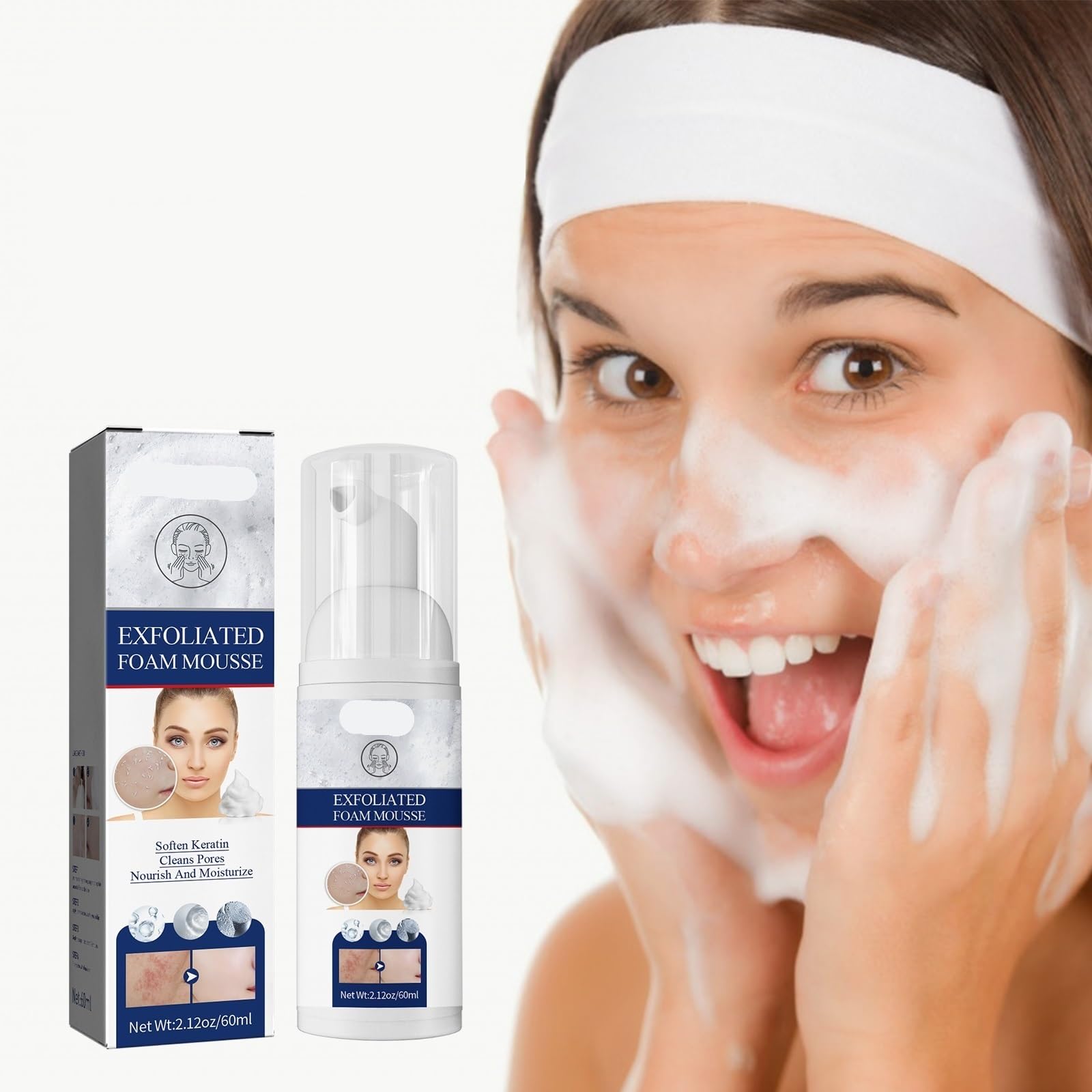 Give your skin a gentle yet effective deep clean with our Exfoliating Mousse Facial Cleanser! Specially formulated to address common skin concerns, this mousse works wonders in peeling off flaky dead skin, which not only makes your skin look dull but also clogs pores. It targets blackheads directly, removing them to reveal a clearer complexion.? For those struggling with oily skin and frequent acne, this cleanser is a game - changer. It helps control excess oil production, reducing the chance of acne breakouts and keeping your skin feeling fresh and light throughout the day. Unlike harsh exfoliators that leave the skin dry and tight, our mousse is designed to hydrate as it cleans. It s much - needed moisture to the skin and aids in skin repair, ensuring your skin stays soft and supple after each use.? Using this exfoliating mousse is a breeze. Start by wetting your face thoroughly. Then, take an appropriate amount of the foam and apply it evenly to your palms. Gently spread the foam over your face, making sure to avoid the sensitive areas around the eyes and lips. Massage your face in gentle circular motions for 1 - 2 minutes to allow the mousse to work its magic in removing dead skin, blackheads, oil, and dirt. Finally, rinse your face thoroughly with clean water, and you'll immediately feel the difference in your skin - it will be cleaner, smoother, and more refreshed.? Suitable for all skin types, especially oily and combination skin prone to blackheads and acne, this Exfoliating Mousse Facial Cleanser is a must - have addition to your daily skincare routine. It provides a thorough clean without compromising the skin's natural moisture barrier, helping you achieve healthier, more radiant skin.Deep Cleansing: Eliminates facial oil and dirt that block pores, leaving the skin clean, smooth, and breathable. Easy to Use: Just wet the face, take an appropriate amount of foam, apply it, massage gently for 1 - 2 minutes, and rinse with water (avoid eyes and lips).?. Hydrating Repairing: While cleaning, it supplements moisture to the skin and supports skin repair, avoiding dryness after exfoliation.?. Oil Acne Control: Regulates excess facial oil, helps reduce acne breakouts, and keeps the skin fresh and non - greasy.?. Gentle Exfoliation: Effectively peels off flaky dead skin, removes blackheads, and unclogs pores without irritating the skin.?.
