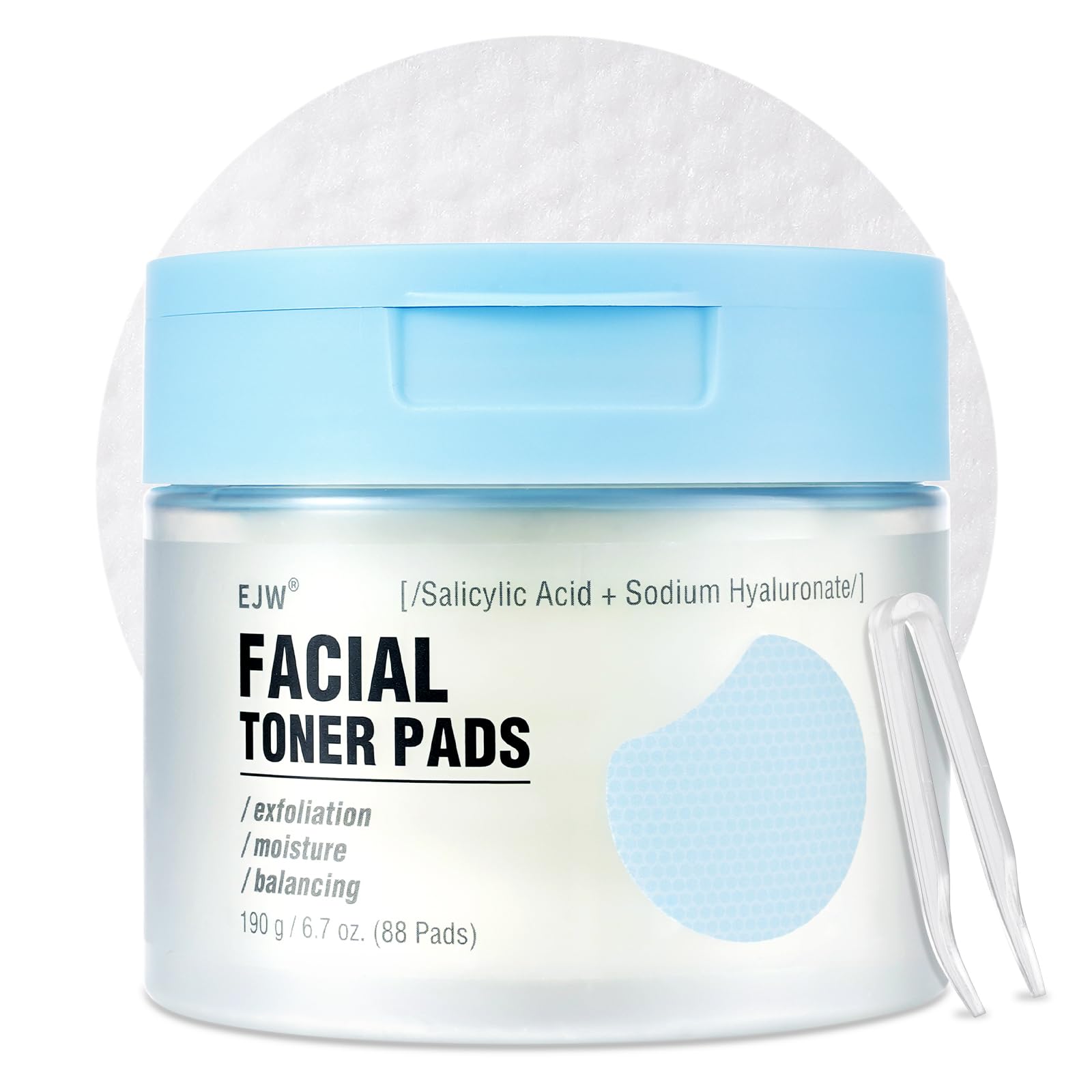 Exfoliating Toner Pads 88 Count - 1% Salicylic Acid (BHA) + Sodium Hyaluronate - Gentle Daily Pads for Acne & Blackheads Pore Refining for Sensitive & Oily Skin