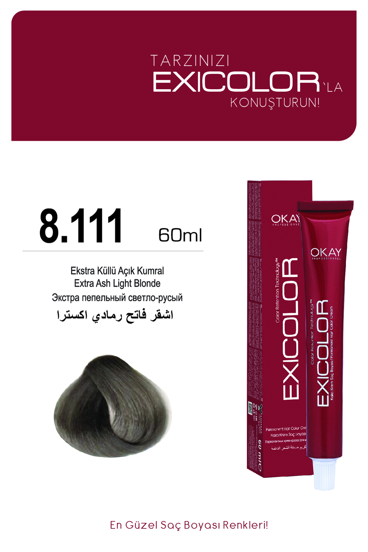 Exicolor Kalici Krem Saç Boyasi, saçlariniza profesyonel dokunuslar katmak ve benzersiz renkleri kesfetmek için özel olarak formüle edilmistir.