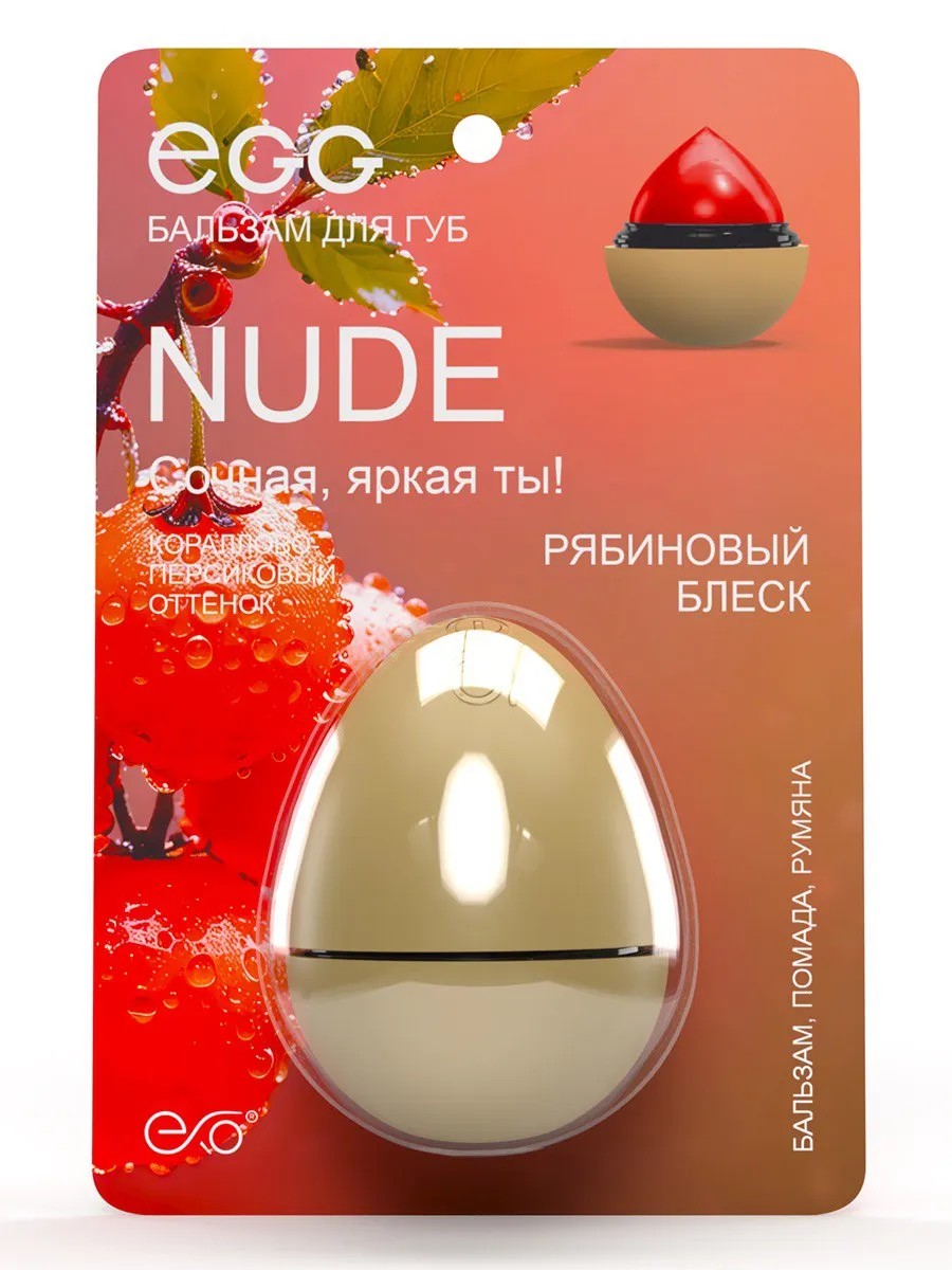 Бальзам для губ, помад. румяна - 3в1 EXO EGG – увлажнение, SPF, защита, цвет со вкусом Рябинового блеска.