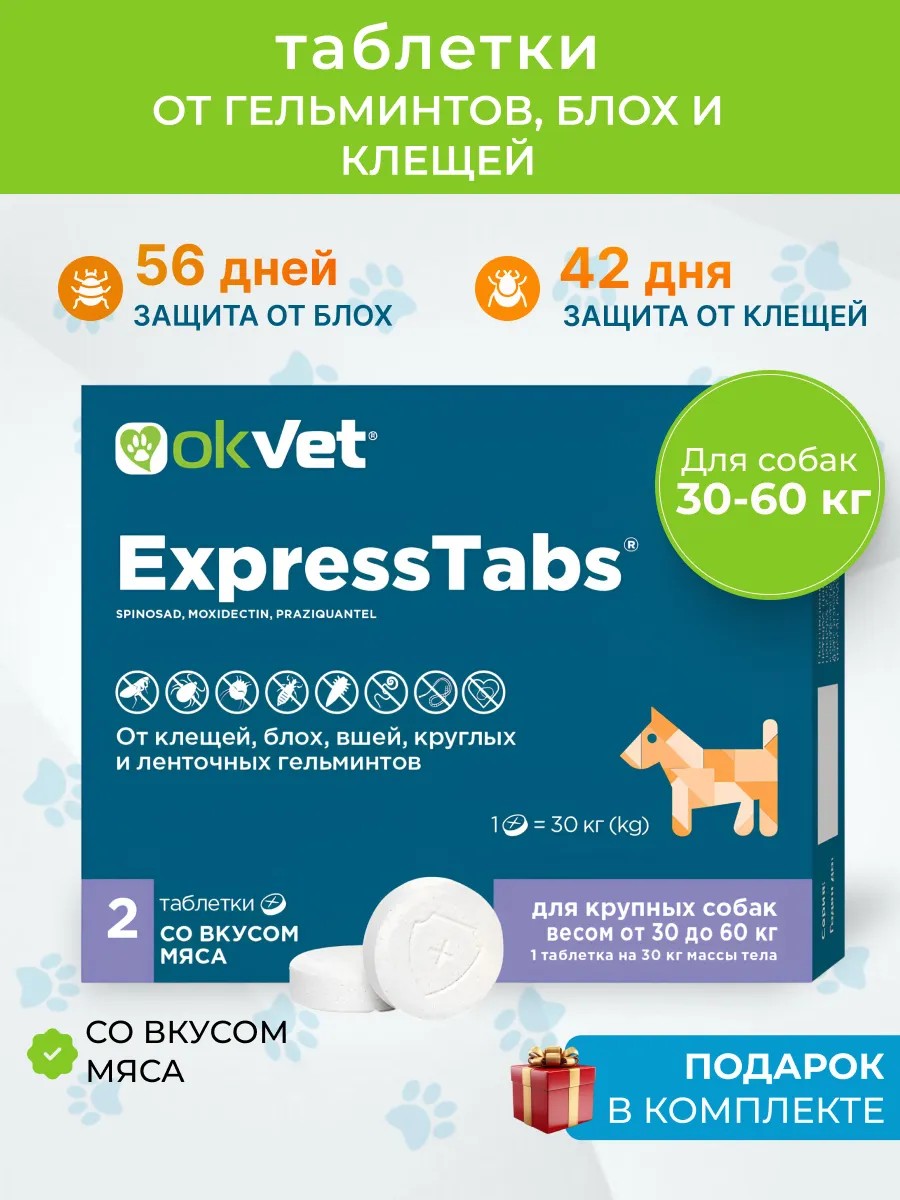 Таблетки OKVET предназначены для защиты собак от клещей и глистов, обеспечивая надежную защиту и комфорт вашему питомцу. Защитит вашего питомца от 37 видов внешних и внутренних паразитов. Длительная защита от блох до 56 дней, от клещей до 42 дней. Экспресс действие защищает от блох через 30 минут. от клещей через 5 часов после применения. Эти таблетки эффективно борются с паразитами, обеспечивая длительное действие и быстрое устранение проблем. Они подходят для собак различных пород( барвекто) и размеров, что делает их универсальным решением для владельцев. Каждая таблетка имеет приятный вкус, что упрощает процесс приема и не вызывает у питомца дискомфорта. Применение okvet помогает предотвратить заражение клещами, которые могут быть опасны для здоровья, и глистами, которые могут негативно сказываться на самочувствии собаки. Такой подход к профилактике позволит вашему любимцу наслаждаться активной жизнью без лишних забот. Выберите okvet expresstabs, и обеспечьте своему питомцу надежную защиту от клещей и глистов, позволяя ему быть здоровым и счастливым.