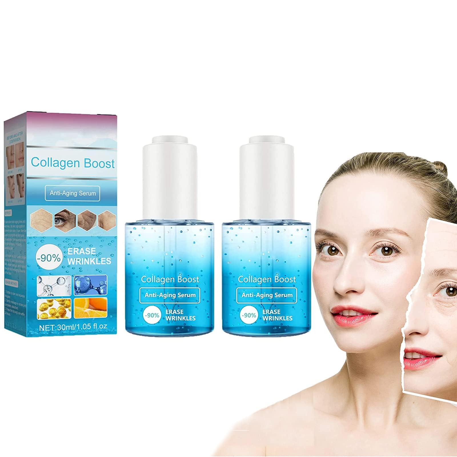Net content: 30 ml bottle Shelf life: 3 years Package contents: 1 2 3 pieces Anti-wrinkle and antioxidant serumSuitable for all skin types : The anti-wrinkle antioxidant serum is suitable for dehydrated or dry skin, dull skin, oily skin, and skin prone to acne and wrinkles. Anti-aging collagen serum: This antioxidant face serum binds moisture and stimulates the production of new collagen, making the skin look plumper and firmer. It increases the cell renewal rate, leading to the production of new cells on the skin's surface. Skincare products : The anti-wrinkle and antioxidant essence luxuriously rejuvenates the skin, improves skin elasticity, restores an even and translucent skin texture, moisturizes, is non-sticky, and absorbs quickly. Anti-aging essence: This anti-aging essence can retain moisture, stimulate collagen production, reduce wrinkles, brighten skin tone, and repair damage. Gently penetrates the skin and brightens the complexion. Anti-aging antioxidant essence : This anti-aging essence utilizes the most innovative ingredients to address skin aging problems such as deep wrinkles, fine lines, dark circles, under-eye bags, and sagging skin.Anti-Falten-Antioxidans-Sérum. Anti-Falten-Gesichtsserum. Kollagen-Anti-Aging-Sérum 02DESCRIPTION DU PRODUIT Nettoinhalt: 30 ml Flasche Haltbarkeit: 3 ans Contenu du paquet : 1 2 3 STÜCK Anti-Falten et AntioxydationsserumGeeignet für alle Hauttypen : anti-faux-antioxydans-sérum eignet sich für dehydrierte oder trockene Haut, stumpfe Haut, fettige Haut und Haut, die zu Akne und Altersfalten neigt. Sérum anti-âge Kollagen : Das antioxydant Gesichtsserum bindet Feuchtigkeit und stimuliert die Produktion von neuem Kollagen, wodurch die Haut praller und fester aussieht. Erhöht die Zellerneuerungsrate, was zur Produktion neuer Zellen auf der Hautoberfläche führt. Hautpflegeprodukte : anti-falten- und antioxydans-essenz verjüngt die haut luxuriös, verbessert die Hautelastizität, stellt eine gleichmäßige und durchscheinende Hautstruktur wieder her, spendet Feuchtigkeit, klebt nicht und zieht sch. nell ein. Anti-âge essenz : anti-âge essenz kann Feuchtigkeit speichern, die Kollagenproduktion anregen, Falten reduzieren, den Hautton aufhellen und Schäden reparieren. Dringt sanft in die Haut ein und hellt den Teint auf. Anti-faux-antioxydans-essenz : Die Anti-Aging-Essenz nutzt die innovativsten Inhaltsstoffe, um Hautalterungsprobleme wie tiefe Falten, feine Linien, Augenringe, Tränensäcke und schlaffe Haut zu lösen.