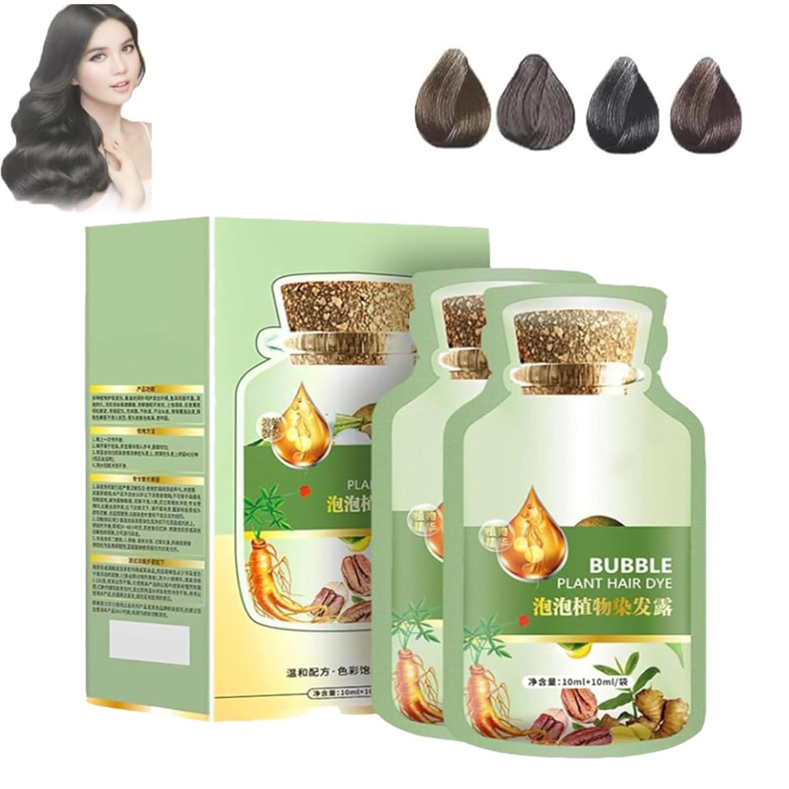 Features: 1. Natural plant extracts, safe and gentle. 2. Individually packaged in separate bags, clean and hygienic. 3. Simple and easy to use. Specifications: Product Name: Bubble Hair Dye Specifications: 20ml 10 bags box. Shelf Life: Three years. Weight: 300g box. Color: Black, Dark Brown, Brown, Coffee. Storage Method: Store in a cool, dry place. Package Contents: 1 x Bubble Hair Dye. Note: Please allow 1-5g 1-2cm error due to manual measurement. The actual color of the item may vary slightly from the image due to differences in monitor settings and lighting. Thank you for your understanding. INSTRUCTIONS FOR USE Open the package, put on gloves and a shawl as shown, and dry your hair. Rub your hair with your fingers for about 8 to 10 minutes, wait 30 minutes, and the processing time should be longer for gray or long hair. Squeeze an appropriate amount of hair dye into the palm of your hand and rub it in evenly. Rinse with water. Rinse and dry on a moderate heat setting for longer-lasting color.Easy to use: 4 easy steps: Open the package, put on gloves and a shawl as shown, and dry your hair. Rub your hair with your fingers for about 8 to 10 minutes, wait 30 minutes (the time for gray or long hair should be longer). Squeeze an appropriate amount of hair dye into the palm of your hand and rub it in evenly. Rinse with water and dry on a moderate heat setting for longer-lasting color. Nourishes and repairs: Unlike traditional hair dyes, this hair dye shampoo is gentle and nourishing, replenishing essential nutrients for your hair. Black hair dye: Plant-based hair coloring shampoo, natural instant shampoo for men and women, easy-to-wash coloring cream. Effectively covers gray hair, so you won't be bothered by gray hair anymore. Natural: Our plant-based hair dye is derived from natural sources, allowing you to avoid harsh chemicals and synthetic additives that can damage your hair. Say goodbye to gray hair with our plant-based hair dye. Achieve beautiful, even color while keeping your hair healthy and vibrant. Bubble-in-Bubble Hair Dye: Our bubble shampoo is easy to use and mess-free. You can use our hair coloring shampoo in the comfort of your own home and achieve excellent color results in a fraction of the time. Save time and money.Bubble Pure Plant Extrait pour les Cheveux Gris Plante Teinture marron foncéDESCRIPTION DU PRODUIT DESCRIPTION DU PRODUIT Description du produit Caractéristiques : 1. Extraits naturels de plantes, sûrs et doux. 2. Emballage indépendant dans des sacs séparés, propre et hygiénique. 3. Utilisation simple et facile à utiliser. Caractéristiques : Nom du produit : teinture pour cheveux à bulles Caractéristiques : 20 ml 10 sacs boîte. Durée de vie : trois ans. Poids : 300 g boîte. Couleur : noir, marron foncé, marron marron, café. Méthode de stockage : placer dans un endroit frais et sec. Contenu de l'emballage : 1 teinture pour cheveux à bulles. Remarque : Les mesures étant prises à la main, les tailles indiquées peuvent varier de 1 à 5 g 1 à 2 cm. La couleur de l'article peut varier de celle de la photo, en fonction des paramètres d'affichage et de luminosité de votre ordinateur. Nous vous remercions de votre compréhension. MODE D'EMPLOI Ouvrez l'emballage, mettez des gants et un châle comme indiqué, séchez vos cheveux. Frottez vos cheveux avec vos doigts pendant environ 8 à 10 minutes, attendez 30 minutes, et le temps pour les cheveux blancs ou longs devrait être plus long. Pressez une quantité appropriée de teinture capillaire dans la paume de votre main et frottez-la uniformément. Rincer à l'eau. Rincez et séchez à température modérée pour une coloration plus durable.Facile à utiliser : 4 étapes faciles : ouvrez l'emballage, mettez des gants et un châle comme indiqué, et séchez vos cheveux. Frottez vos cheveux avec vos doigts pendant environ 8 à 10 minutes, attendez 30 minutes, et le temps pour les cheveux blancs ou longs devrait être plus long. Pressez une quantité appropriée de teinture capillaire dans la paume de votre main et frottez-les uniformément. Rincez à l'eau et séchez à température modérée pour une coloration plus durable. Nourrit et répare : différent des teintures capillaires traditionnelles, le shampooing de teinture pour cheveux est doux et nourrissant, reconstituant les nutriments nécessaires aux cheveux. Teinture pour cheveux noirs : shampooing colorant capillaire végétal, shampooing instantané naturel pour homme et femme, crème colorante facile à laver. Couvre efficacement les cheveux gris, vous ne serez plus affecté par les cheveux gris. Naturelle : notre teinture capillaire à base de plantes est dérivée de sources naturelles, ce qui vous permet d'éviter les produits chimiques agressifs et les additifs synthétiques qui peuvent endommager vos cheveux. Dites adieu aux cheveux gris avec notre teinture capillaire à base de plantes. Obtenez une belle couleur uniforme tout en gardant vos cheveux sains et éclatants. Teinture pour cheveux à bulles : notre shampooing à bulles est facile à utiliser et sans désordre. Vous pouvez utiliser notre shampooing colorant pour cheveux dans le confort de votre maison et obtenir d'excellents résultats de couleur en une fraction du temps. Économisez beaucoup de temps et d'argent.