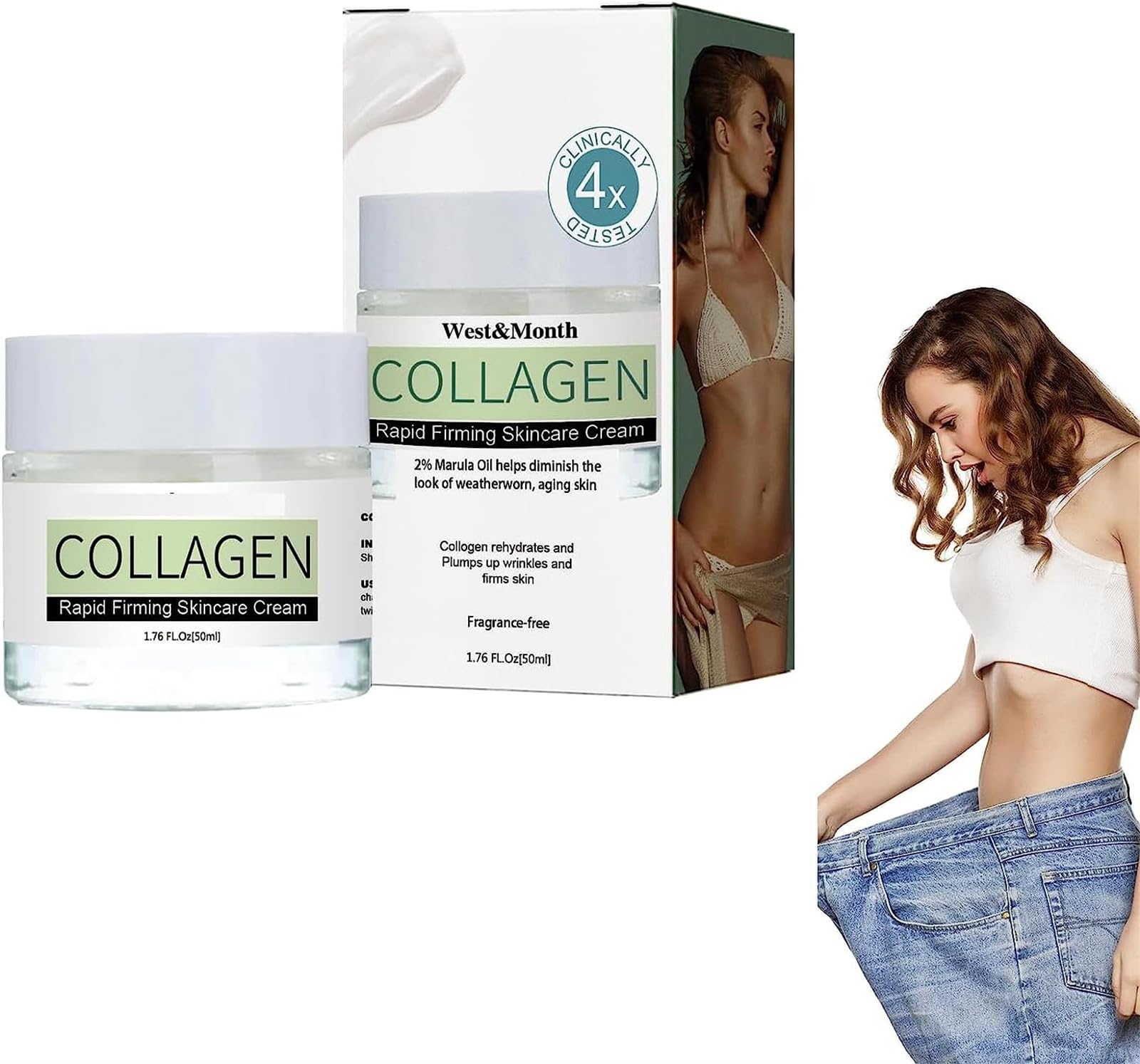 Specification Name: Collagen Fast Firming and Lifting Cream Category: Collagen Slimming Cream Content: 50ml Shelf Life: 3 years Efficacy: Abdominal firming, body shaping Package includes 1 2 3 Collagen Fast Firming and Lifting Cream Notice: 1. Due to manual measurements, please allow slight measurement deviations. 2. Due to the different display and lighting effects, the actual color of the item may be slightly different from the color displayed on the picture.Key Ingredients Collagen, Vitamin E, Collagen has good permeability, Vitamin E helps tighten skin and will also give your neck breasts buttocks stomach thigh the firmer appearance you want. Thigh Enhancement The natural compounds in this formula help in the regeneration of skin cells, improving circulation, hydration and elasticity. Breast Firming Lifting Collagen firming skincare cream can penetrate the skin, rejuvenate and regenerate your skin, help burn fatty tissue, promote collagen production and tighten skin. Lift Firm Buttocks Firming and firming cream with collagen Fivfivgo fast balancing estrogen level in the body and stimulating your body's natural collagen production while reducing stretch marks and improving elasticity. Collagen Firm Body Cream Collagen Firm Body Cream is all you need to remove stretch marks and get rid of wrinkles, firm your abs, lift breasts and buttocks, improve sagging skin, tighten loose flesh and much more. spécificationNom:Crème raffermissante et liftante rapide au collagèneCatégorie : Crème Amincissante au CollagèneContenu : 50 mlDurée de conservation : 3 ansEfficacité : raffermissement abdominal, modelage du corps Le forfait comprend1 2 3 Crème raffermissante et liftante rapide au collagène Avis:1. En raison des mesures manuelles, veuillez autoriser de légers écarts de mesure.2. En raison des différents effets d'affichage et d'éclairage, la couleur réelle de l'article peut être légèrement différente de la couleur affichée sur l'image.Ingrédients clés Le collagène, la vitamine E, le collagène a une bonne perméabilité, la vitamine E aide à raffermir la peau et donnera également à votre cou seins fesses estomac cuisse l'apparence plus ferme que vous souhaitez. Renforcement des cuisses Les composés naturels présents dans cette formule aident à la régénération des cellules de la peau, améliorant la circulation, l'hydratation et l'élasticité. Fermeture et lifting des seins La crème de soin raffermissante au collagène peut pénétrer la peau, rajeunir et régénérer votre peau, aider à brûler les tissus adipeux, favoriser la production de collagène et raffermir la peau. Fesse liftante et raffermissante Crème raffermissante et liftante rapide au collagène Fivfivgo équilibrant le niveau d'oestrogène dans le corps et stimulant la production naturelle de collagène de votre corps tout en réduisant les vergetures et en améliorant l'élasticité. Crème pour le corps ferme au collagène La crème pour le corps ferme au collagène est tout ce dont vous avez besoin pour éliminer les vergetures et vous débarrasser des rides, raffermir vos abdominaux, soulever les seins et les fesses, améliorer le relâchement cutané, resserrer la chair lâche et bien plus encore.