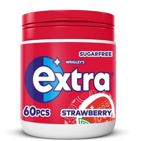 Ensure you've always got Gum. This bulk pack of chewing gum is perfect for keeping the cupboards stocked up so you can ensure you've always got an option to refresh at any time. Not feeling the office vibesWorking from home not workingReach for Extra chewing gum for that much-needed five minutes screen break and a freshness boost that'll get you back on track. Sugarfree chewing gum pieces bursting with a delicious strawberry flavour. Extra sugarfree gum is beneficial for dental health as it helps to neutralise plaque acids. It's Oral Health Foundation Approved, Irish Dental Association Approved and suitable for vegetarians. Nutrition facts Per100PortionType Average Nutritional Value As Per 100g Per100Energyinkcal 168kcal Per100EnergyinkJ 699kJ Per100Protein 0g Per100Carbohydrates 67.7g Per100Sugar 0g Per100Fat 0g Per100Fibre 0g Per100Sodium 0mg Category Food Your daily values may be higher or lower depending on your calaries needs INFORMATION. Modern chewing gum is composed of gum base, sweeteners, softeners plasticizers, flavors, colors, and, typically, a hard or powdered polyol coating. Nutrition facts. Ingredients Sweetener Sorbitol E420(I) (36G 100G)Sweetener Maltitol E965(I) (27G 100G)Gum Base [Contains Soy Letchin)Sweetener Mannitol E421 (3G 100G)Natural Nature Identical And Artificial Strawberry FlavorsThickener (Gum Arabic)And Acid (Citric Acid)Humectant Glycerol [Non-Animal)Artificial Sweetener Aspartame E951 (0. 359G 100G)Sweetener Maltitol Syrup E965(Ii) [0. 27G 100G)Color E171Artificial Sweetener Acesulfame K E950 (0. 017G 100G)Glazinf Agent Carnauba WaxAntioxidant Bha E320. Wrigley's Chewing gum is a soft, cohesive substance designed to be chewed without being swallowed.