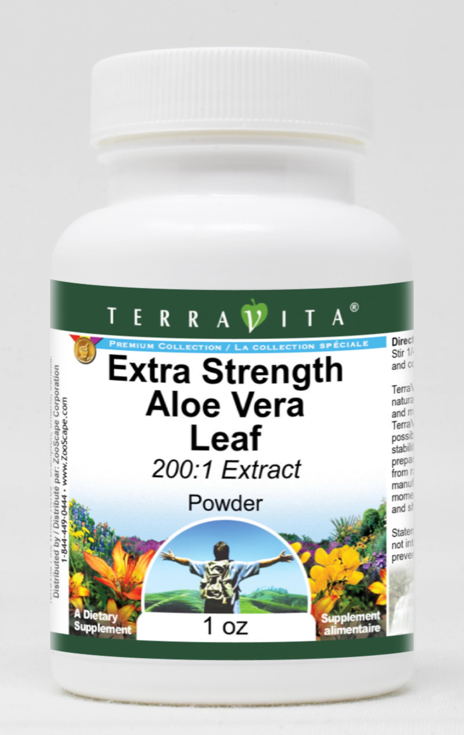 Convenient Powder format. Size: 1 oz. Manufacturer: TerraVita. No fillers. Extra Strength Aloe Vera Leaf 200:1 Extract Powder (1 oz, ZIN: 514073).