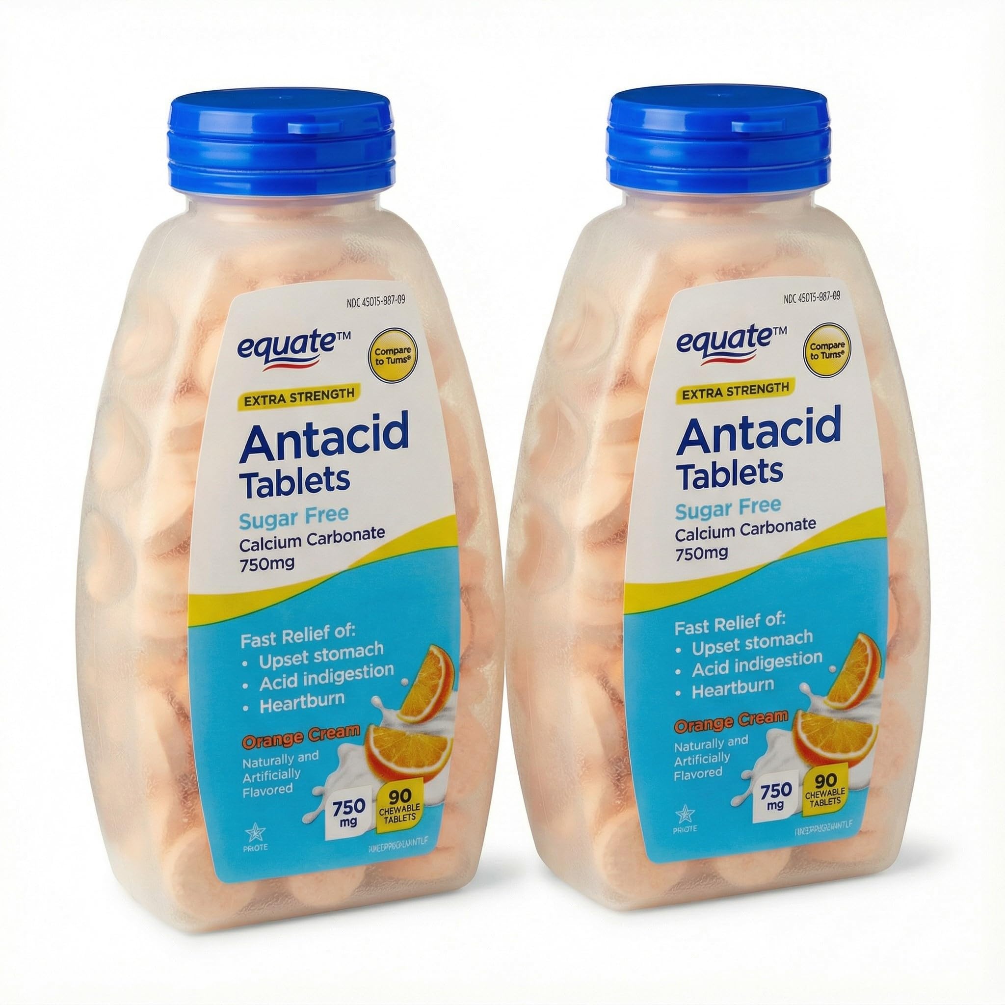 Extra Strength Antacid 750mg – 90 Chewable Tablets This extra strength antacid is designed for adults and children 12 years and older who prefer a convenient chewable tablet format. Each tablet contains 750 mg and comes in a 90-count bottle, offering a practical option for everyday use at home, work, or while traveling. These chewable antacid tablets feature a smooth orange cream flavor and a sugar-free formula. The tablets are easy to chew and do not require water, making them a suitable choice for customers looking for anti acid tablets, antacids chewable, or chewable antacid options. Extra Strength Antacid: 750 mg per chewable tablet in a value-size 90 count bottle. Sugar-Free Antacid Tablets: Designed for those who prefer sugar-free antacid chewables. Calcium Supplement Option: May also be used as a dietary calcium supplement when taken as directed. Easy to Use Format: Chewable tablets with no need for liquid antacid alternatives. Practical Packaging: Packaged in a plastic, easy-grip bottle with a flip-top lid for simple storage. This product fits well for customers searching for antacid tablets, antiacid, anti acid relief chewable, heartburn chews, antacid chewable tablets, or travel antacid. Its compact bottle and chewable form make it easy to keep on hand for daily routines.For Adults and Children 12 Years and Older – Suitable for adults and children ages 12 , designed for responsible use with clear daily limits, fitting a wide range of customer needs. Convenient Bottle for Home or Travel – Packaged in a plastic, easy-grip bottle with a secure flip-top lid, making these anti acid chewables simple to store, carry, and access when needed. Calcium Carbonate Based Formula – Formulated with calcium carbonate, these chewable antacids may also be used as a dietary calcium supplement when taken as directed, adding versatility to everyday use. Sugar-Free Orange Cream Flavor – These sugar-free antacid tablets feature a smooth orange cream taste, ideal for customers looking for sugar free antacid chewables without compromising convenience or flavor. Extra Strength Chewable Antacid 750mg – Each tablet contains 750 mg and comes in a 90-count bottle, offering a practical option for those searching for chewable antacid tablets, anti acid tablets, or antacids chewable for daily routines.