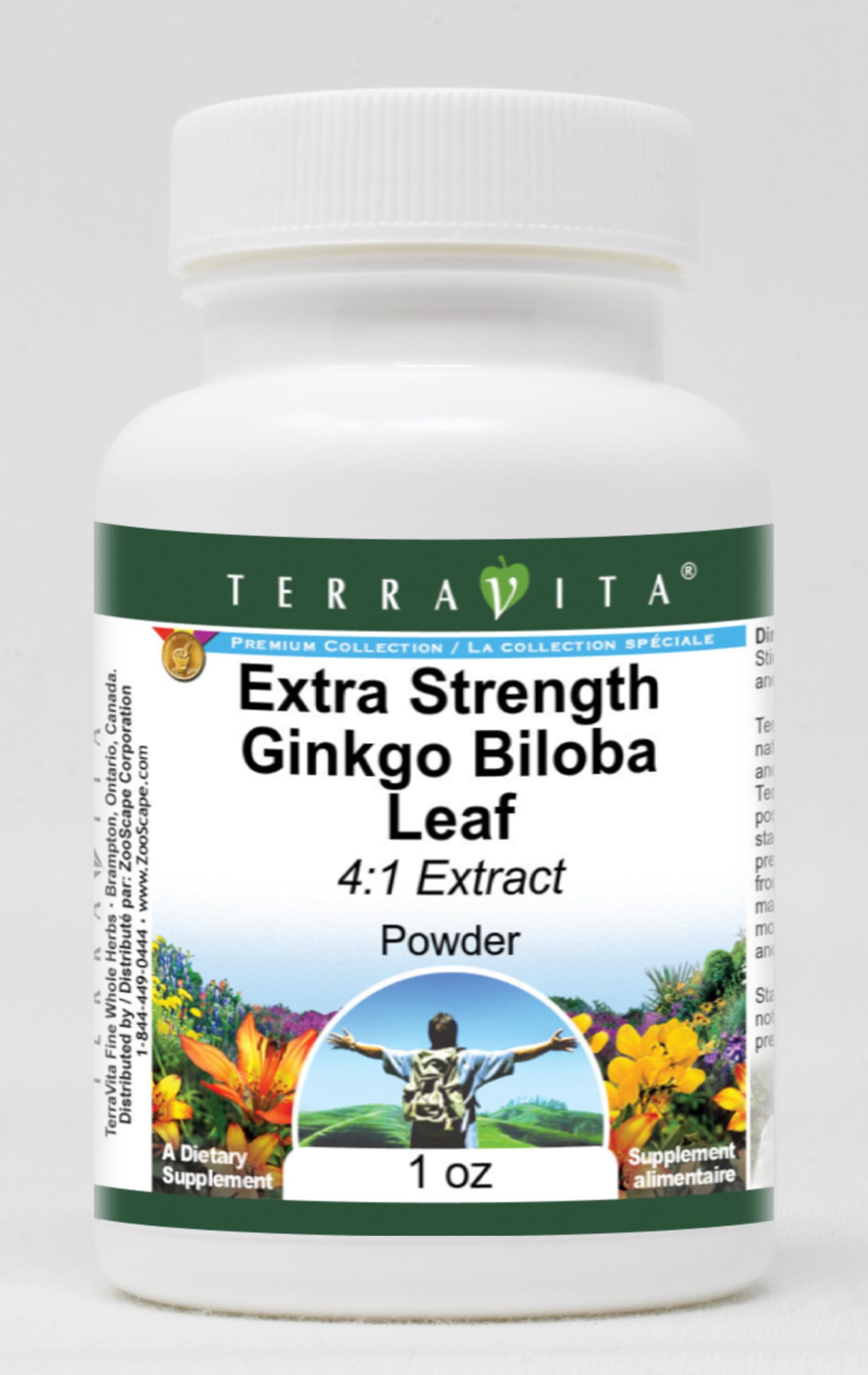 Extra Strength Ginkgo Biloba Leaf 4:1 Extract Powder (1 oz, ZIN: 514333) Packaged in the United States in a GMP certified facility (Good Manufacturing Practice). No fillers. Manufacturer: TerraVita Size: 1 oz Convenient Powder format. Ingredients: Ginkgo Biloba Leaf