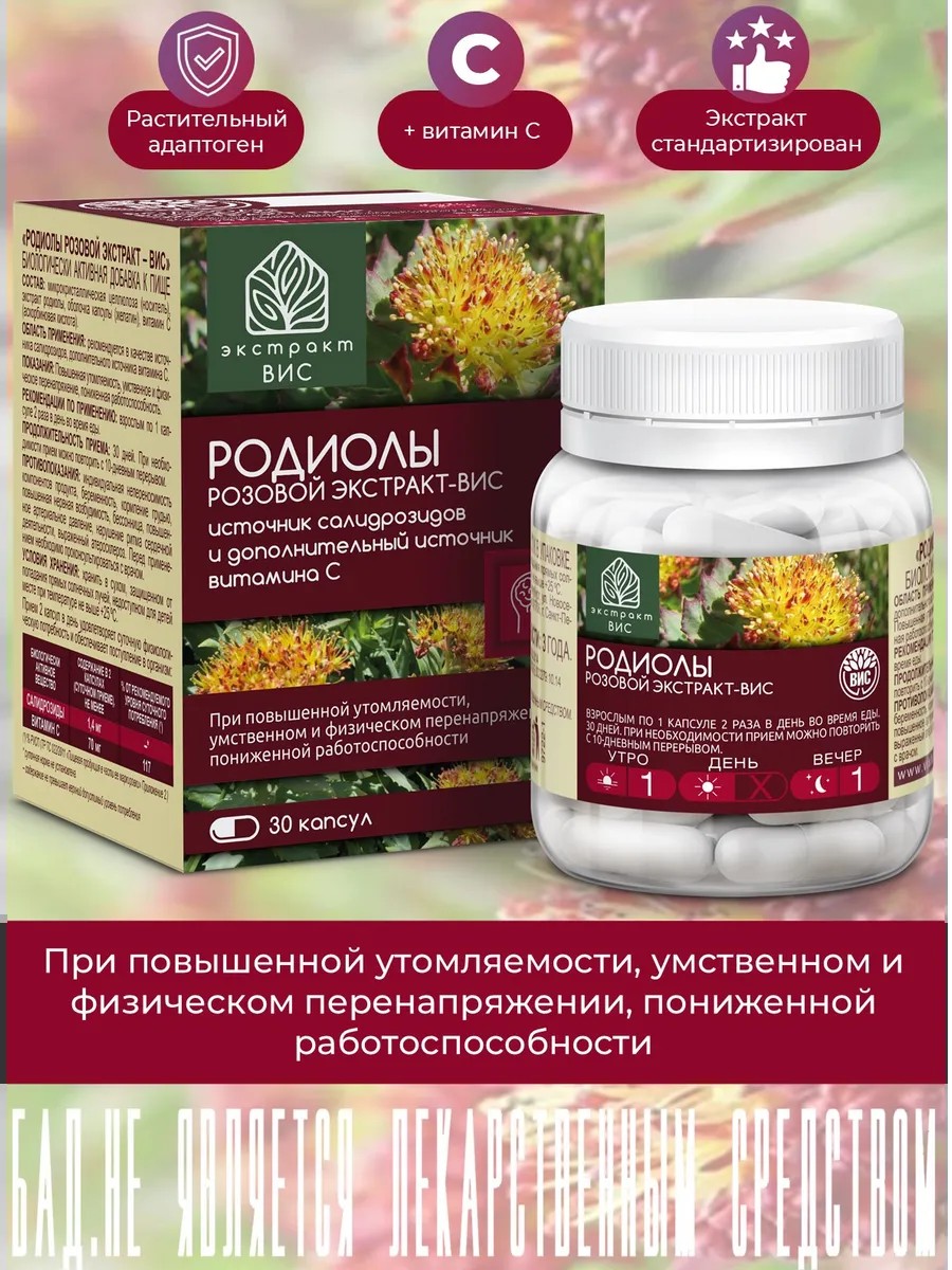 Экстракт-ВИС Родиолы розовой экстракт, капсулы 0,4г №30