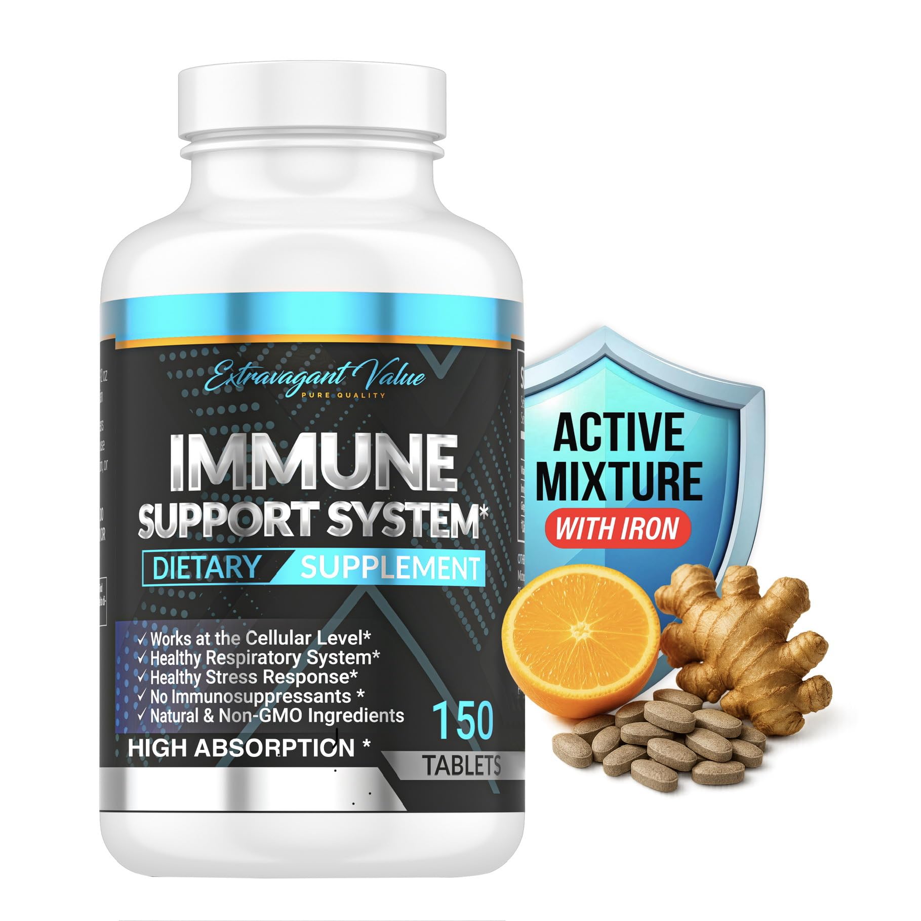 Extravagant Value Iron Supplement 25mg with Vitamin C 1000mg Gentle Iron Tablets with Ginger Root for Immune, Energy & Blood Support, High Absorption, Non-GMO, 150 Tablets