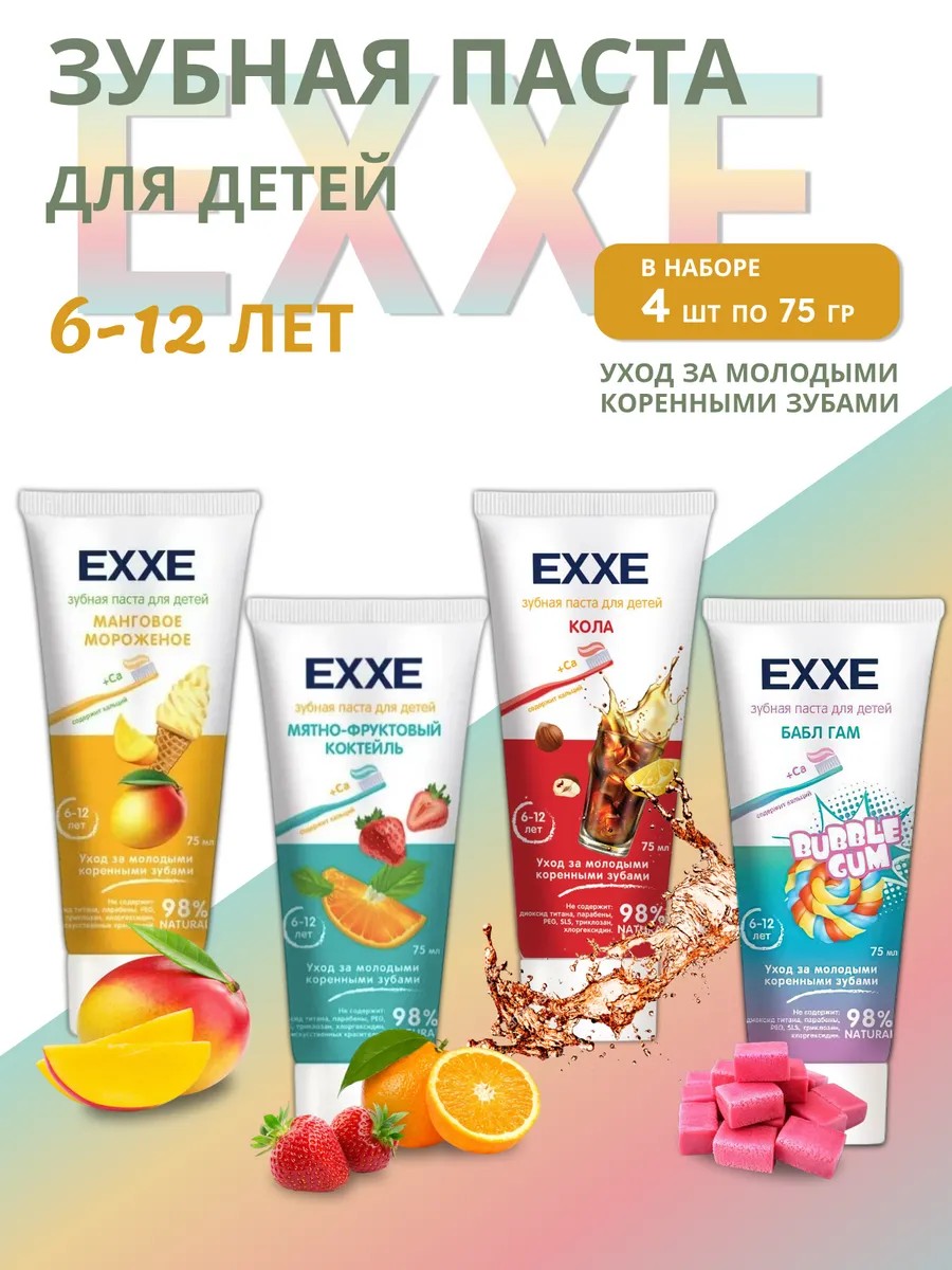Exxe Детская зубная паста 6-12 лет набор 4 штуки