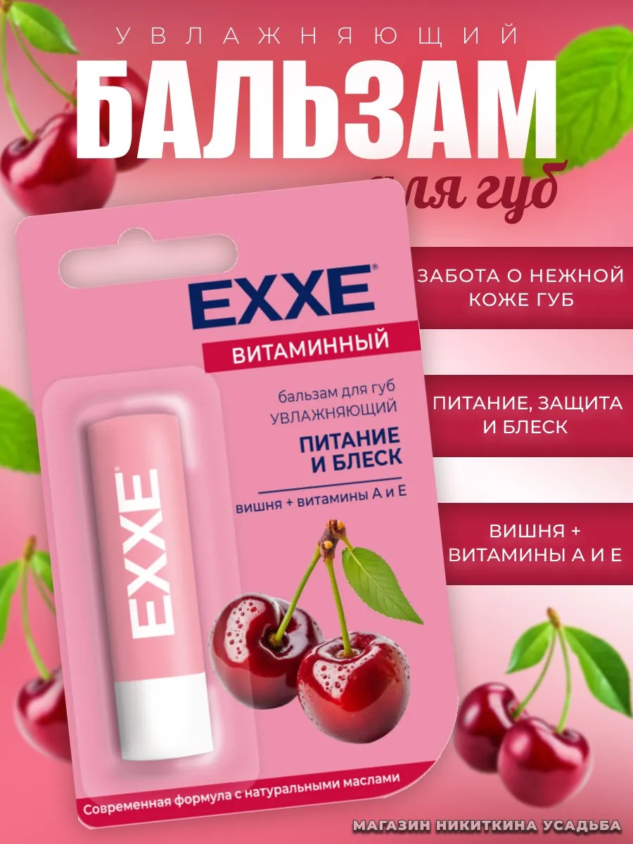 Гигиеническая помада Exxe Бальзам для губ Витаминный Вишня.