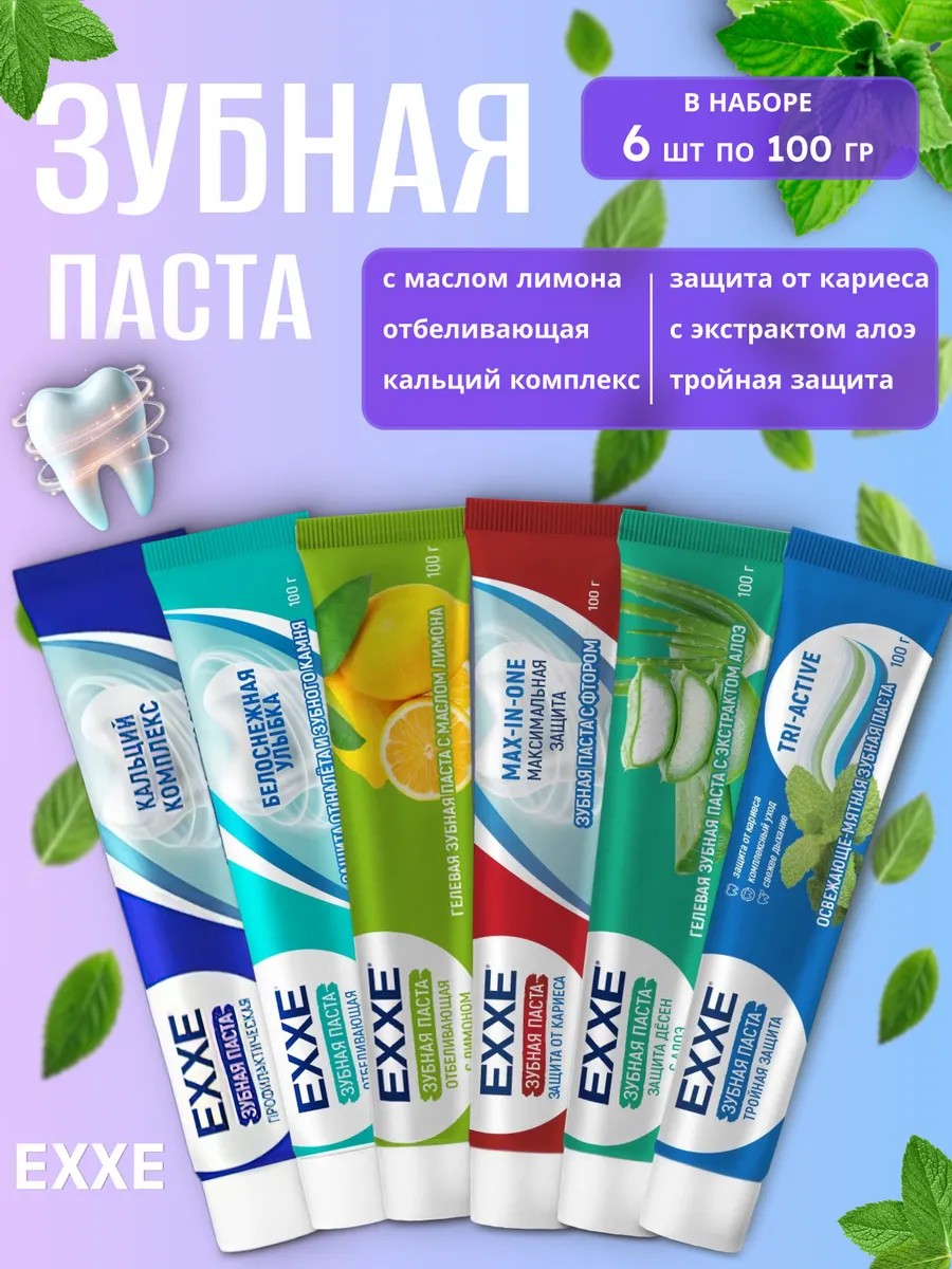 Набор зубных паст EXXE — 6 в 1 для идеальной улыбки!