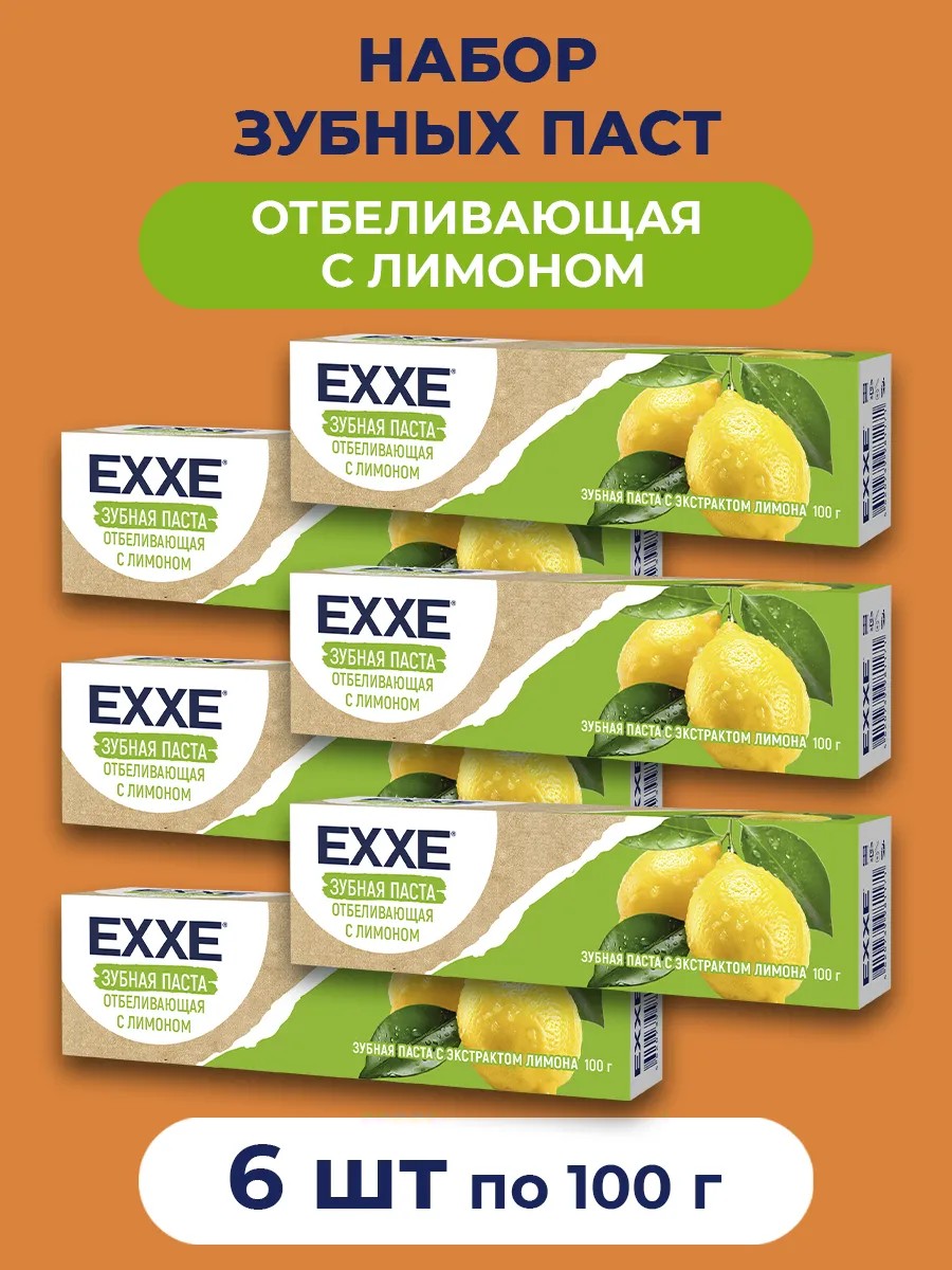 EXXE Зубная паста отбеливающая с лимоном. ЭКОНОМИЧНАЯ УПАКОВКА - 6 штук. НАДОЛГО ХВАТИТ.