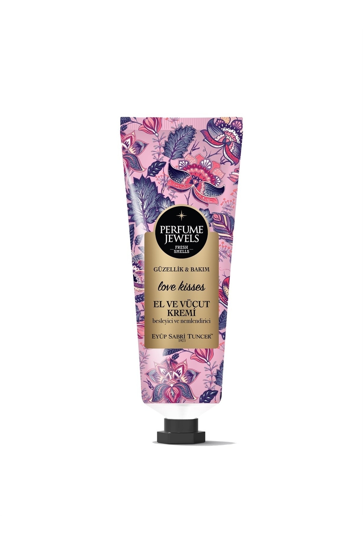 Perfume Jewels Love Kisses El ve Vücut Kremi paraben, glüten içermeyen dogaya saygili özel formülü ile her cilt tipine uyum saglar. Ecocert sertifikali Shea Butter içerigi ile dört mevsim boyunca kullanilabilecek mükemmel bir nemlendiricidir. Dogal zeytinyagli içerigi cildinize yumusaklik kazandirirken E vitamini ile zenginlestirilen formülü güçlü bir bakim saglar ve saglikli bir cilde kavusmaniza yardimci olur. Dikkat çekmeyi seven ask kadinlarinin vazgeçilmezidir.