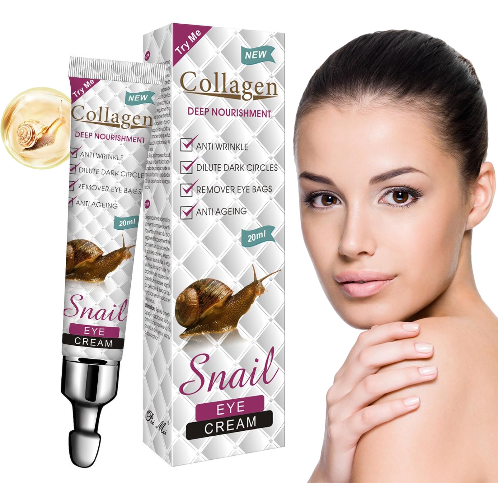 Description : Why choose our eye cream? The skin around the eyes is dry and prone to wrinkles and dark circles. Our moisturizing eye cream contains natural, gentle ingredients that protect the skin around the eyes. It effectively relieves eye fatigue, nourishes and moisturizes, reduces fine lines, reduces eye fatigue and revitalizes the eye area. Product specifications: - : Anti-wrinkle eye cream - Net content: 20ml - Skin type: All skin types Product advantages: ?Moisturizes and nourishes ? Reduces fine lines, eye wrinkles and puffiness Reduces eye wrinkles, fatigue lines and crow's feet. Instructions for use: After cleansing, take an appropriate amount of eye cream with your fingertips and apply to the skin around the eyes, gently massaging from the inside out until completely absorbed. Product highlights: [Lighten eyes]. Our eye cream restores lost moisture to the skin around the eyes, intensely moisturizes the skin around the eyes and effectively fights dark circles, wrinkles, fine lines, bags under the eyes and other skin problems around the eyes. Keeps the skin around the eyes soft, smooth and elastic. [Reduce puffiness and dark circles] After applying the eye cream, the skin around the eyes is hydrated and the nourishing and protective ingredients it contains reduce the appearance of dark circles in the morning.? Suitable for all skin types The eye cream is moisturizing, non-sticky, quickly absorbed, and suitable for most skin types. Whether it is dehydrated or dry skin, dull skin or oily skin. ? Application Mild ingredients, absorbs easily. Take a rice-sized amount of eye cream and apply it to your ring finger, gently pat around the eyes, gently lift and massage the under-eye area to facilitate absorption. ? Powerful Anti-Aging This Instant Eye Lift cream visibly counteracts skin aging, firms the skin, smoothes fine lines, and reduces puffiness under the eyes. The extract has the function of moisturizing the skin and replenishing skin moisture. ? Instant Eye Lift Instant Eye Lift reduces the appearance of fine lines, wrinkles and crow's feet. Eye Cream Essence By promoting collagen synthesis and increg skin elasticity, it provides a firming effect, resulting in smoother and more supple skin around the eyes. ? Moisturizing Replenishes moisture under the skin. The strong moisturizing and water-repellent effect makes the skin firm and elastic. Locks in moisture without loss, cares for the lower layer of the skin, the texture is light and smooth, not sticky. This ensures that your delicate eye area remains properly hydrated, reducing dryness and the appearance of dark circles. Description : Pourquoi choisir notre crème pour les yeux ? La peau du contour des yeux est sèche et sujette aux rides et aux cernes. Notre crème hydratante pour les yeux contient des ingrédients naturels et doux qui protègent la peau du contour des yeux. Elle soulage efficacement la fatigue des yeux, nourrit et hydrate, atténue les ridules, réduit la fatigue des yeux et revitalise le contour de l'œil. Spécifications du produit : - : Crème anti-rides pour les yeux - Contenu net : 20ml - Type de peau : Tous types de peau Avantages du produit : ?Moisturise et nourrit ? Réduit les ridules, les rides des yeux et les poches Réduit les rides des yeux, les rides de fatigue et les pattes d'oie. Mode d'emploi : Après le nettoyage, prendre une quantité appropriée de crème pour les yeux avec le bout des doigts et appliquer sur la peau autour des yeux, en massant doucement de l'intérieur vers l'extérieur jusqu'à absorption complète. Points forts du produit : [Éclaircir les yeux]. Notre crème pour les yeux restaure l'hydratation perdue de la peau autour des yeux, hydrate intensément la peau autour des yeux et lutte efficacement contre les cernes, les rides, les ridules, les poches sous les yeux et les autres problèmes de peau autour des yeux. Maintient la peau autour des yeux douce, lisse et élastique. [Réduire les poches et les cernes] Après l'application de la crème pour les yeux, la peau autour des yeux est hydratée et les ingrédients nourrissants et protecteurs qu'elle contient réduisent l'apparence des cernes le matin.? Convient à toutes les peaux La crème pour les yeux est hydratante, non collante, rapidement absorbée et convient à la plupart des types de peau. Qu'il s'agisse d'une peau déshydratée ou sèche, d'une peau terne ou d'une peau grasse. ? Application Ingrédients doux, absorbe facilement. Prenez une quantité de crème pour les yeux de la taille d'un riz et appliquez-la sur votre annulaire, tapotez doucement autour des yeux, soulevez doucement et massez la zone sous les yeux pour faciliter l'absorption. ? Anti-âge puissant Cette crème Instant Eye Lift contrecarre visiblement le vieillissement cutané, raffermit la peau, lisse les ridules et réduit les poches sous les yeux. L'extrait a pour fonction d'hydrater la peau et de reconstituer l'hydratation de la peau. ? Lifting instantané des yeux Instant Eye Lift réduit l'apparence des ridules, des rides et des pattes d'oie. Eye Cream Essence En favorisant la synthèse du collagène et en augmentant l'élasticité de la peau, elle procure un effet raffermissant, résultant en une peau plus lisse et plus souple autour des yeux. ? Hydratant Régénère l'hydratation du dessous de la peau. Le fort effet hydratant et hydrofuge rend la peau ferme et élastique. Retient l'humidité sans perte, prend soin de la couche inférieure de la peau, la texture est légère et lisse, non collante. Cela garantit que la zone délicate de vos yeux reste correctement hydratée, réduisant ainsi la sécheresse et l'apparence des cernes.