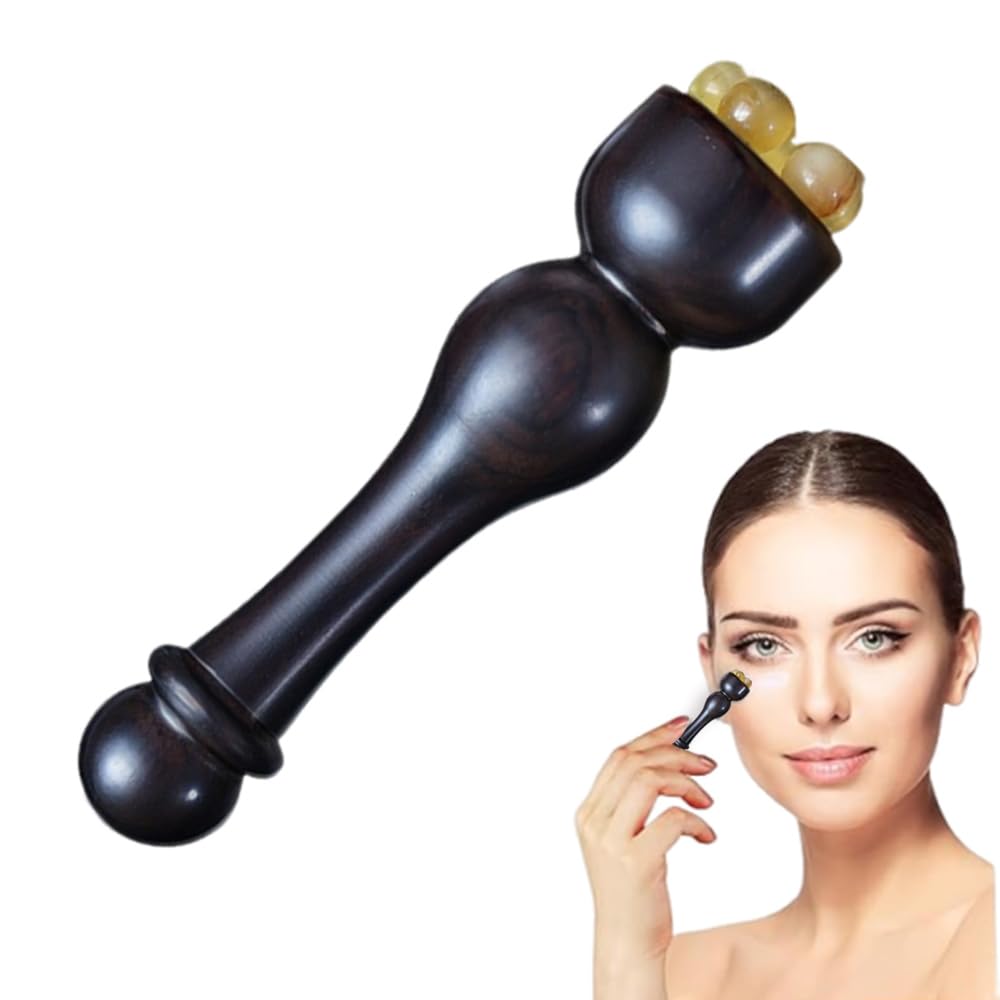 Effective for Eye and Muscle Relief Eye Cream Massage Sticks targets eye fatigue, puffiness, and eye bags. The rolling massage promotes blood circulation around the eyes, while acupoint pressing relieves muscle tension. Regular use helps improve the appearance of the eye area and reduces discomfort from long - term screen use or fatigue. Compact Portable Size Eye Cream Massage Sticks feature a mini, portable design—only 2.9 inches (7.37 cm) long. Easy to slip into purses, makeup bags, or travel kits. Perfect for on - the - go eye care, whether at work, traveling, or out and about. Use in Combination with Eye Cream Pair these sticks with your favorite eye creams or facial serums! The rolling beads help massage products deeper into skin, boosting absorption. Glide over freshly applied cream—let the gentle pressure and smooth motion lock in hydration. Multi - functional Massage Design Designed for eye and face massage. Features beads for rolling massage around the eyes to reduce puffiness and eye bags. The rounded tip can be used as an acupoint pen for precise acupoint pressing, relieving eye fatigue and muscle aches. Premium Material Combination Eye Cream Massage Sticks are crafted from quality sandalwood. The sandalwood handle, known as "black gold in wood, with a smooth texture and natural luster. The sheep horn beads are silky - smooth, providing a comfortable massage experience.