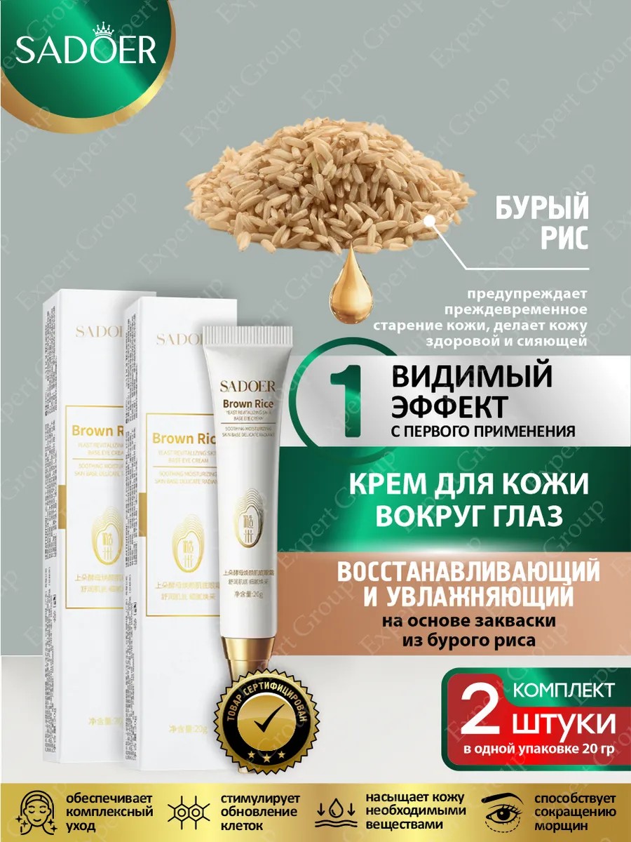 Восстанавливающий и увлажняющий крем для век Sadoer на основе закваски из риса 20гр х 2 шт. Формула крема обеспечивает комплексный эффект, сочетая увлажнение, восстановление и антиоксидантную защиту. Экстракт дрожжей из коричневого риса, богатый витаминами и минералами, стимулирует обновление клеток, улучшает микроциркуляцию и способствует сокращению мелких морщин и признаков усталости. Коричневый рис, известный своими питательными свойствами, насыщает кожу необходимыми веществами, возвращая ей упругость и свежий, отдохнувший вид. Способ применения: 1. После очищения и тонизирования утром и вечером. 2. Возьмите необходимое количество этого крема, аккуратно нанесите на кожу вокруг глаз. 3. Слегка помассируйте до полного впитывания.