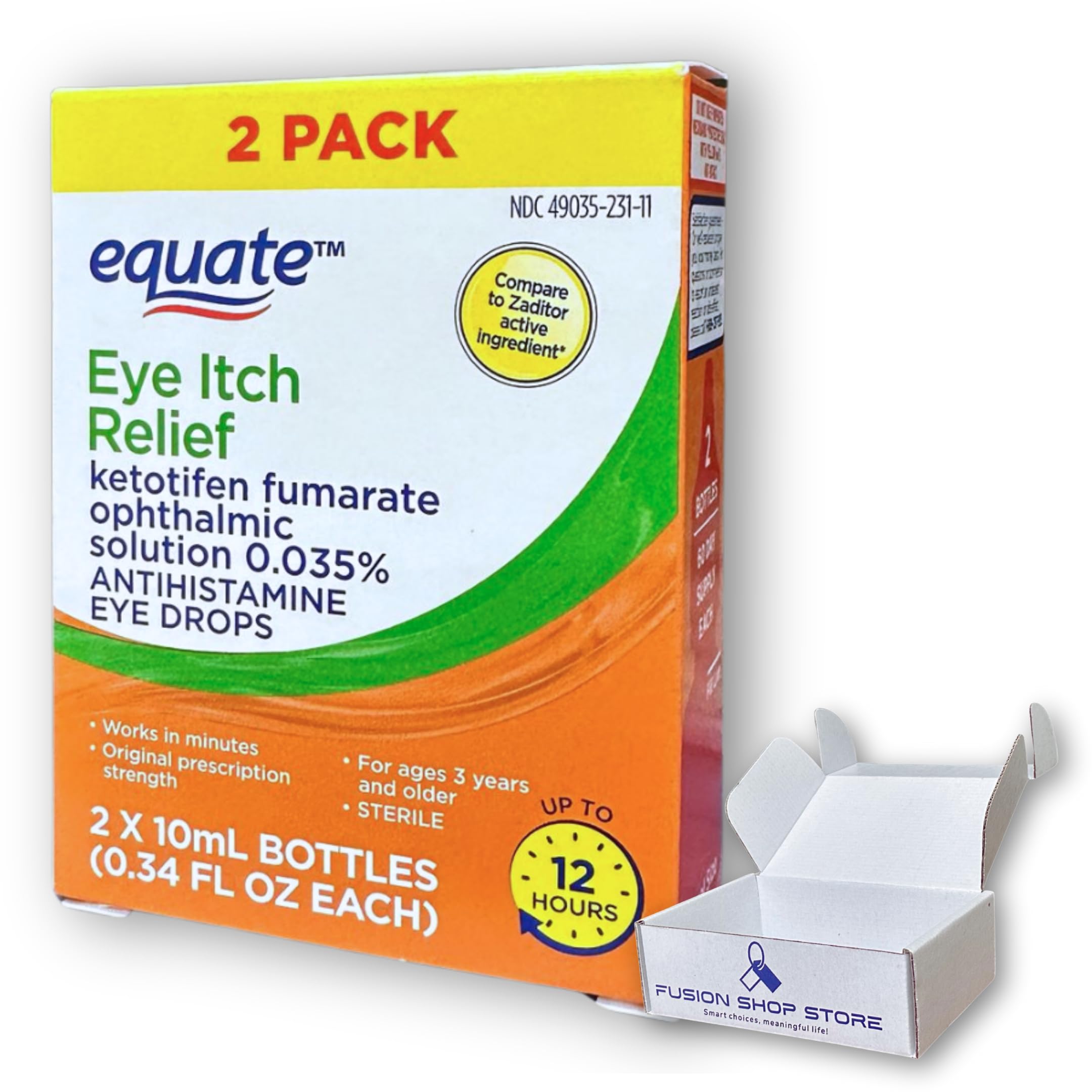 Eye Itch Relief Antihistamine Drops- 2 Bottle (0.34 fl oz Each) Boxed by Fusion Shop Store