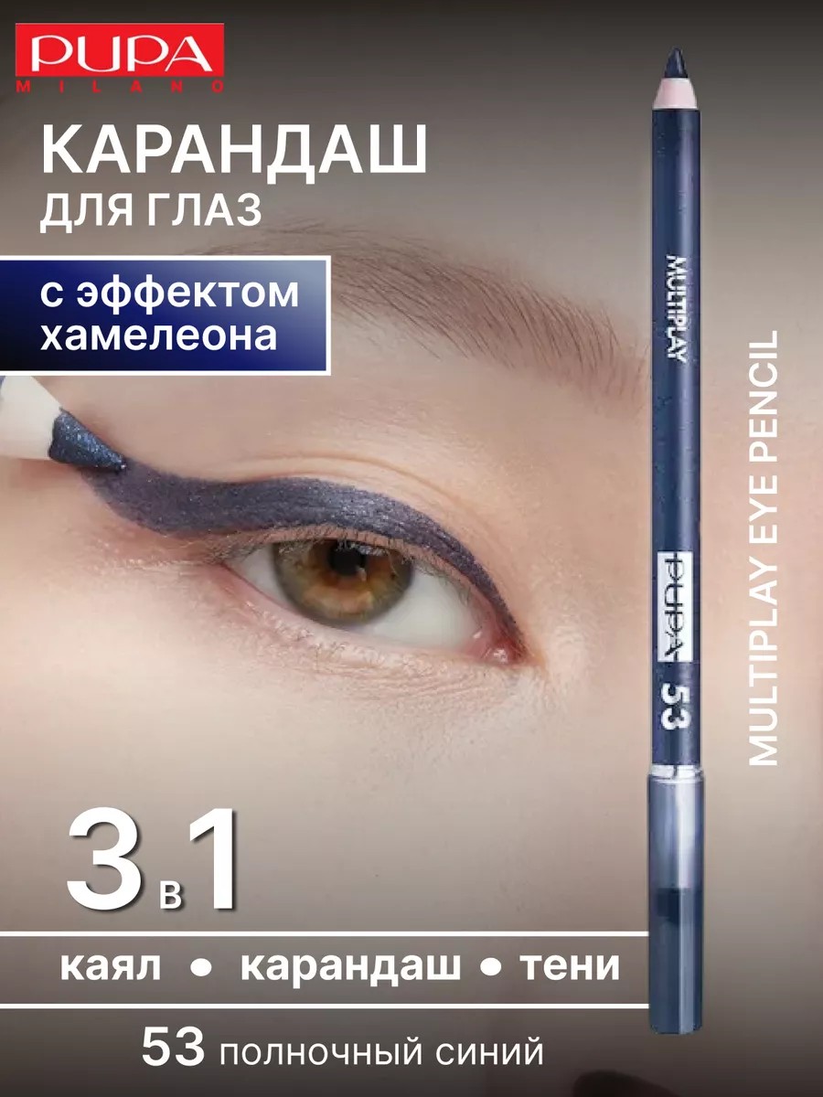 Карандаш для глаз с аппликатором Multiplay Eye Pencil 3в1 ПОДВОДКА, ТЕНИ для век и КАЙАЛ Пупа вамп. Стойкий карандаш для глаз с аппликатором для растушёвки предназначен для создания стрелок, подводки внутреннего века, может выполнять основу для теней или заменить тени для глаз. Карандаш гипоаллергенный, подходит для чувствительных глаз и контактных линз. Благодаря уникальной формуле, обогащенной восками и маслами, карандаш легко наносится, скользит по коже век, не царапает и не растягивает веко. Карандаш для глаз с блестками лучше наносить поверх стойких кремовых теней с матовой или сатиновой текстурой. Советы по макияжу: для создания четкой, тонкой и острой стрелки используйте жидкую подводку для глаз или лайнер, можно использовать фломастер для глаз. Подводка со штампом обычно используется для супер быстрого макияжа. Гелевую подводку можно нанести на все веко, в качестве базы для теней. Мягкие кайалы подойдут для прорисовки слизистого контура век и межреснички