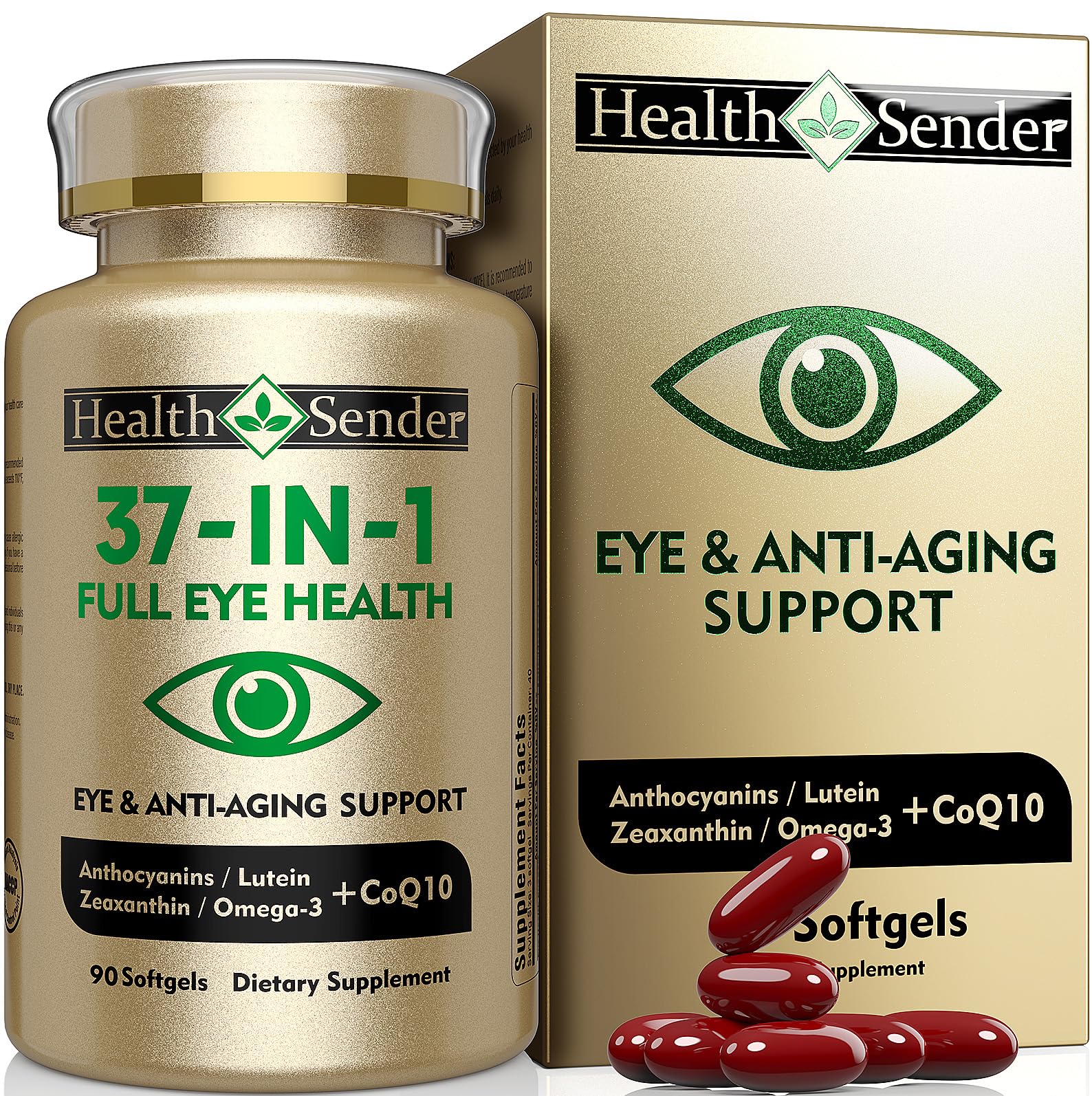 Eye Vitamin 37 in 1 Supplement for Man Woman Full Eye Support Inspired by AREDS 2 with Lutein Zeaxanthin Bilberry Extract Anthocyanin Omega-3 and CoQ10 Anti Aging Softgels 90 Count (Pack of 1) Brown