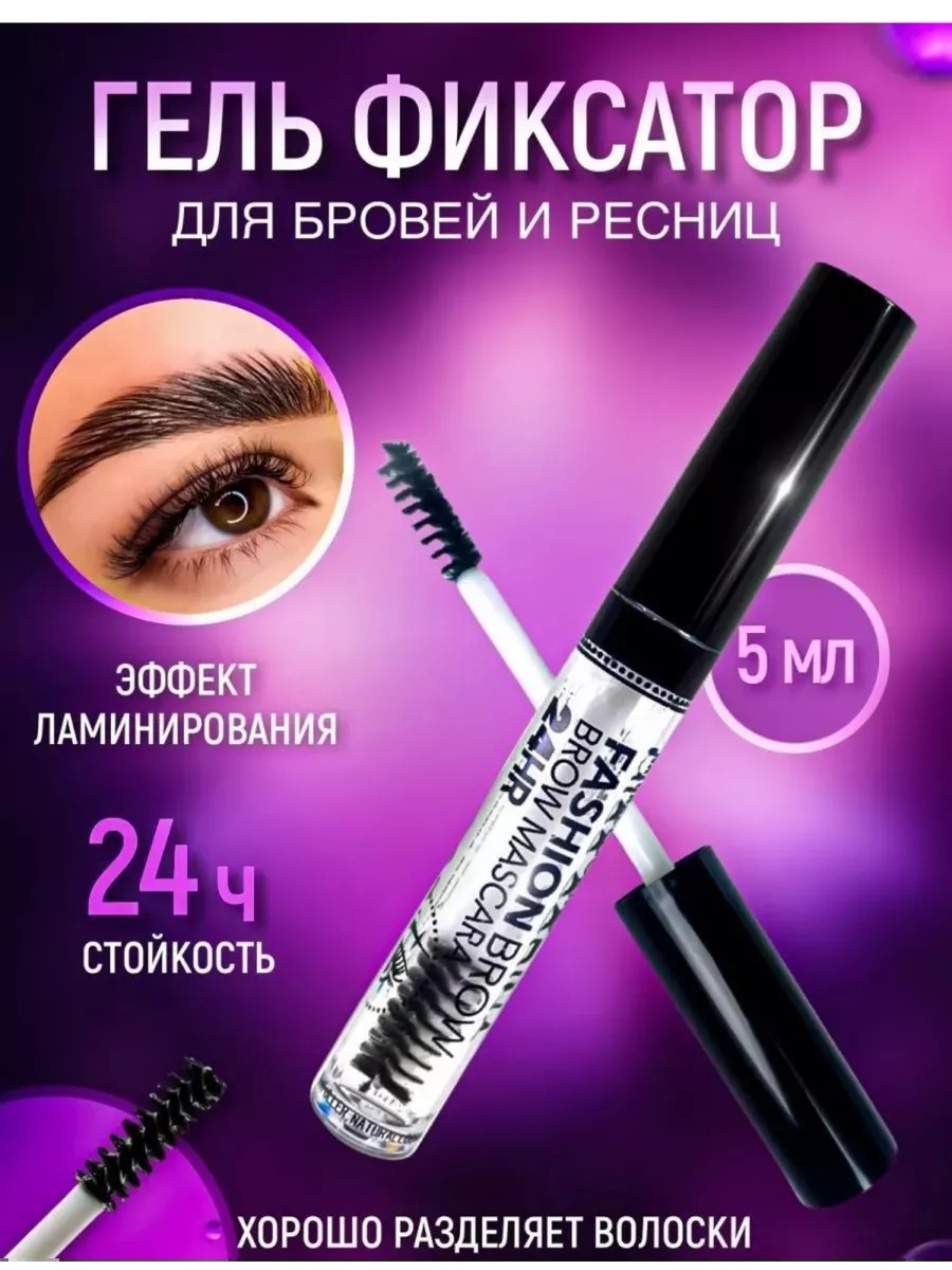 Фиксирующий гель для бровей с эффектом ламинирования создаст долговременную укладку на весь день. Прозрачный фиксатор стойко держится до 24 часов без дополнительных нанесений.