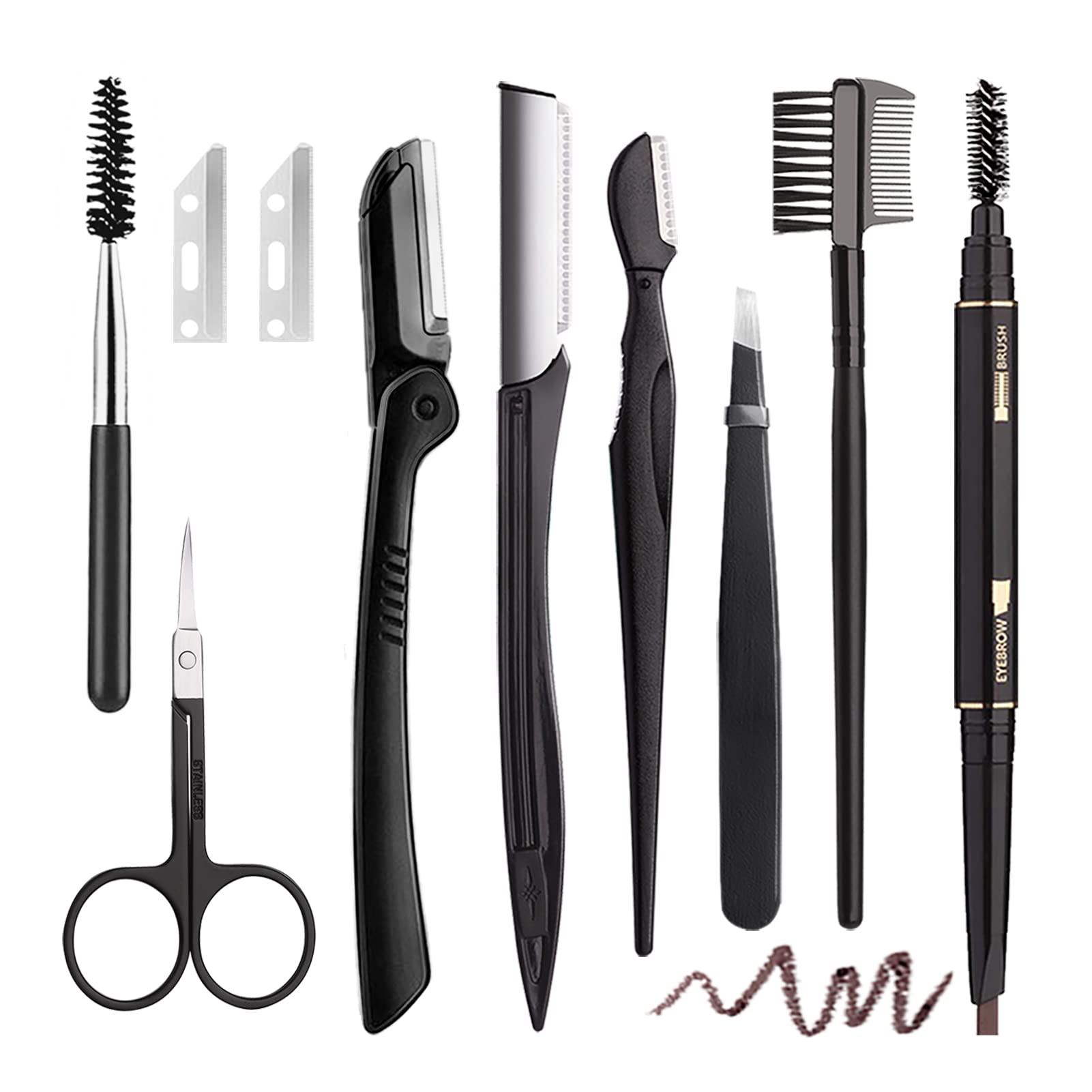 Professional Eyebrow Grooming Set 9 pcs eyebrow grooming tools, a great kit comes with everything you need. Eyebrow Razor Come With Safety Covers These eyebrow razors are made of steel blade, it’s durable and sharp. Non-slip groove handle, resin cap, protect you from scratching and prevent from dirty and dust. Used as facial hair razors, remove extra peach hair on face, also used to remove fine hair on neck, leg and Bikini lines. Stainless Steel Eyebrow Scissors and Eyebrow Tweezers Scissors are sharp and the curved design makes trimming more easily and safely. Tweezers are professionally designed to accurately grip the roots and remove short, thin eyebrows or ingrown hairs, reducing the pain of hair removal. Multipurpose Eyebrow Razor, Foldable Face Razors Razor edge with micro-grooved teeth of blade , provide comfortable shaving, protect from hurting skin. The eyebrow razors are sharp but gentle to apply, suitable for sensitive skin and beginners. Spiral Eyelash Brush - Curl Eyelashes Great for separating eyelashes and removing mascara clumps, leaving your lashes looking shiny and attractive. Package Including: 1 x Eyebrow Scissors 1 x Large Eyebrow Razors 1 x Mini Razors 1 x Foldable Face Razors 1 x Eyebrow Brush with Comb 1 x Eyebrow Tweezers 1 x Spiral Eyelash Brush 1 x Eyebrow Pencil with Brush 1 x Plastic Storage Box 2 x Spare Blades for Foldable Razors CAUTIONS: Scissors and razors are sharp, handle with care. Tools CARE: Clean the tools with soap and water or alcohol. Wipe brush clean with a makeup wipe or wash with soap and water and allow to dry.Save Money and Time: With this eyebrow grooming kit, you can save money and time by fixing your brows at home instead of constantly going to the beauty salon. It’s super convenient and easy to use which suits all kinds of users. Travel-Friendly: Our eyebrow grooming set is small enough to fit in your pocket and comes with a durable plastic case to protect your tools and keep them from scratching your luggage and your bag. Excellent Material: The dermaplaning tool kit is made of high-quality stainless steel blades will not rust and it bites tight. The handle is made of plastic, light weight, non-slip and easy to grip. Is is a breeze to clean without any weird smells. Comprehensive Kit: Three different sizes of face razors for you to remove fine hair from the eyebrows, bread, facial or bikini effectively. eyebrow scissors for trimming long eyebrows, even the beard and hair. Tweezers can be used to pull out small hair. Eyebrow comb with brush is used to comb eyebrows, spiral eyelash brush is used to curl eyelashes. All-in-One Kit: This eyebrow trimmer kit gets everything you need in one kit! With 9 pieces including 3 eyebrow razors, eyebrow comb, eyebrow scissors, tweezers, brown pencil, eyebrow brush and lash brush, you'll be able to take care of your eyebrows from start to finish.Item Dimensions LxWxH: 5 x 2.5 x 0.3 inches. Blade Material: Stainless Steel. Brand: Generic. Material: Plastic. Color: Brown. Date First Available: December 26, 2021. Best Sellers Rank: #481,683 in Beauty & Personal Care. Customer Reviews: 3.0 3.0 out of 5 stars 1 rating 3.0 out of 5 stars. : B09P72KCHL. Batteries Required?: ?No. Shape: ?Square. Product Dimensions: ?5 x 2.5 x 0.3 inches. Item Weight: ?4.2 ounces. Manufacturer: ?Boyionline. Style: ?American. Item Dimensions LxWxH: ?5 x 2.5 x 0.3 inches. Blade Material: ?Stainless Steel. Brand: ?Generic. Material: ?Plastic. Color: ?Brown.