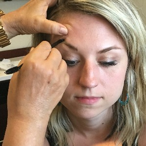 Step 1. Pull UP your arch with your thumb and using the angled brush tip fill it in with the Color. Then complete the rest of your brow.