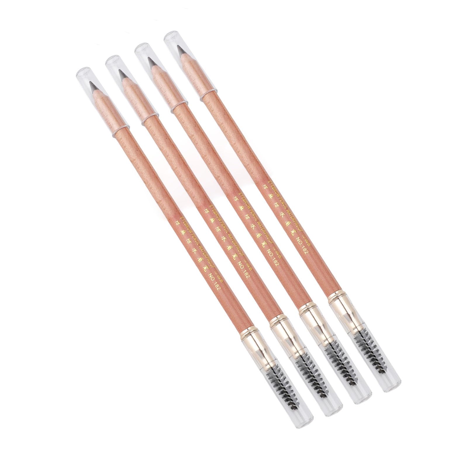 1. Beech Pen Handle: The eyebrow pencil features beech pen handle that provides a comfortable grip, making it easy to control and maneuver during application. The ergonomic design ensures a smoothly and precise application process. 2. Dual Ended: Designed with a spiral brush head, the eyebrow pencil allows you to brush and shape your brows before and after applying the color. The soft yet firm bristles of the brush ensure a seamless blending of the eyebrow color for defined finish. 3. Waterproof and Sweatproof: The eyebrow pencil is resistant to water and sweat, making it ideal for all day wear. Even after rinsing with water, the color and lines remain clear and vibrant, ensuring that your brows stay put and look perfect throughout the day. 4. Easy Application: With the eyebrow pencil, achieving the perfect brow shape is effortless, allowing you to create precise and defined brows with ease. Say goodbye to smudging or fading, the pencil provides long lasting color that stays put all day. 5. Convenient Set: The eyebrow pencil set includes 4pcs. Whether you're a beginner, a professional makeup artist, or someone looking for daily brow items, the set has got you covered. Specification: Item Type: Double Head Eyebrow Pencil Material: Beech Quantity: 4pcs Net Content: 4 x 1.1g Shelf Life: 5 Years Package List: 4 x Eyebrow PencilConvenient Set: The eyebrow pencil set includes 4pcs. Whether you're a beginner, a professional makeup artist, or someone looking for daily brow items, the set has got you covered. Beech Pen Handle: The eyebrow pencil features beech pen handle that provides a comfortable grip, making it easy to control and maneuver during application. The ergonomic design ensures a smoothly and precise application process. Dual Ended: Designed with a spiral brush head, the eyebrow pencil allows you to brush and shape your brows before and after applying the color. The soft yet firm bristles of the brush ensure a seamless blending of the eyebrow color for defined finish. Waterproof and Sweatproof: The eyebrow pencil is resistant to water and sweat, making it ideal for all day wear. Even after rinsing with water, the color and lines remain clear and vibrant, ensuring that your brows stay put and look perfect throughout the day. Easy Application: With the eyebrow pencil, achieving the perfect brow shape is effortless, allowing you to create precise and defined brows with ease. Say goodbye to smudging or fading, the pencil provides long lasting color that stays put all day.