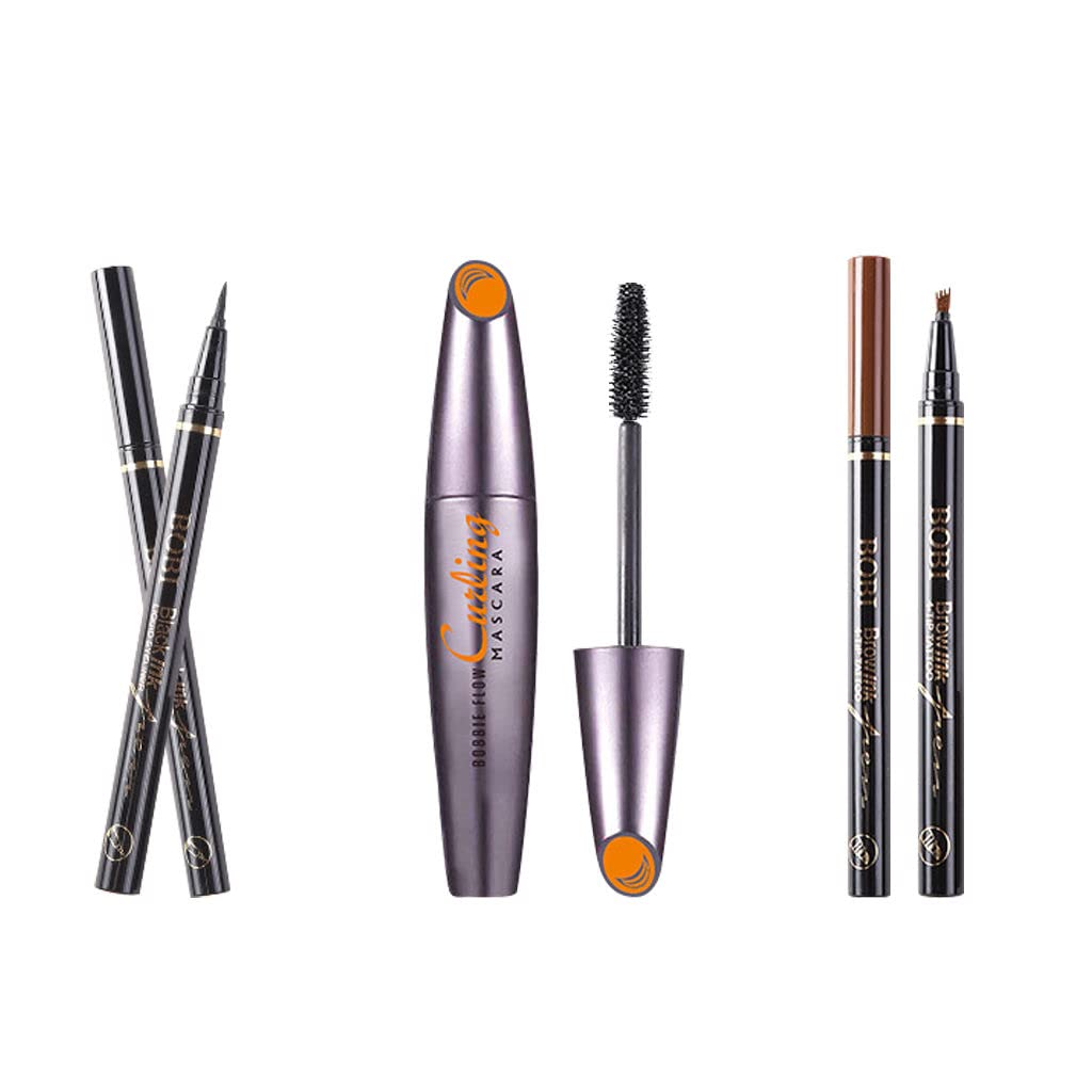 This 3-in-1 set is perfect for beginners and experts alike. The products have easy-to-use, fuss-free designs yet provide professional, salon-level results. Streamline your makeup routine or achieve complex cat-eye looks quickly. Beautiful makeup is now within easy reach. The high-quality, pigmented formulas last up to 24 hours without smudging, fading or transfer. Your makeup will stay put through heat, humidity, physical activity or even a splash of water. Minimal touch-ups required for an all-day flawless finish. This set comes with multiple shades to suit different skin tones. Choose from light brown,dark brown,or black color shades as well as eyeliner shades ranging from navy to emerald. You can achieve natural or bold makeup looks as desired. The mascara lengthens, volumizes and curls lashes for dramatic, lush lashes. The eyebrow pencil precisely shapes and contours brows. And the eyeliner pen creates smooth, waterproof lines. Each product has an specialized yet versatile formula. This set includes a volumizing mascara, four-tips eyebrow pencil and waterproof liquid eyeliner pen. It is your all-in-one solution for full, flawless makeup. Define, line and lash your way to eye-catching beauty.
