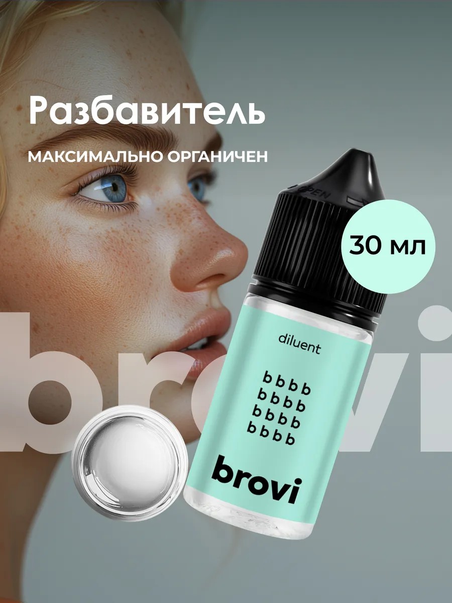 Наш фирменный разбавитель БРОВИ максимально органичен – он создан из жидкой фазы наших красок (pigments), а поэтому результат работы после проведения перманента всегда будет предсказуем.