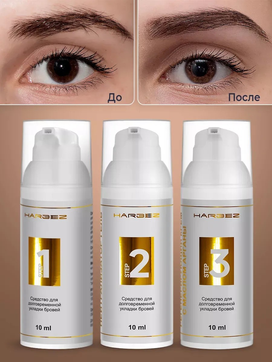 Long-lasting eyebrow styling is a wonderful treatment that leaves your face beautiful and well-groomed. This set contains three products for a perfect result. The first is a gel that softens brows and prepares them for styling. The second is a neutralizing cream that seals the results and adds strength to brows. The third is an argan cream-oil that increases the hold of your style. All components in the set are made from soft and safe materials that do not cause irritation. These products ensure a perfect shape, highlighting the natural beauty of your brows, and making them appear fuller. You can style your brows either in the salon or at home using the included stencils, brush, and brushes. The lamination results last up to a month. For the first 24 hours after the procedure, it is important to avoid moisture, steam, makeup, and other harsh treatments on your brows. We recommend reading the instructions before using the set. Do not apply the products to damaged skin! You can also purchase other products from our brand, such as eyelash lamination kits, eyebrow tinting kits, and eyelash care products. We offer special offers and sales, so you have a great opportunity to purchase our products at a great price as a gift for your loved one, mom, or friend this holiday season.